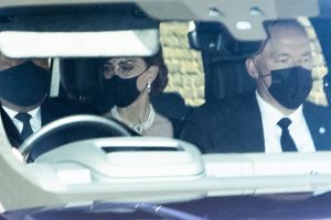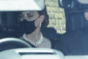 Kate Middleton, triste y con las joyas de la Reina Isabel II, acude al funeral del Duque de Edimburgo