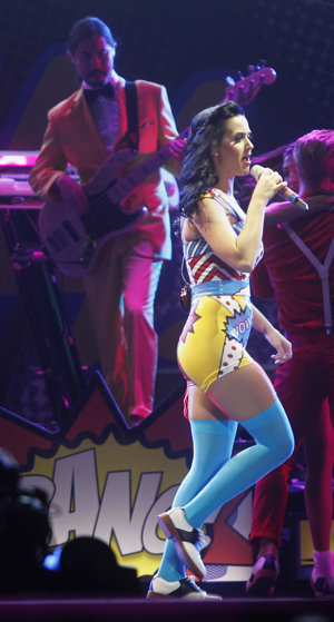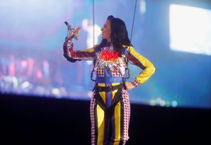 Katy Perry, vestida de personaje de cómic, en el Campeonato Mundial de Paracaidismo