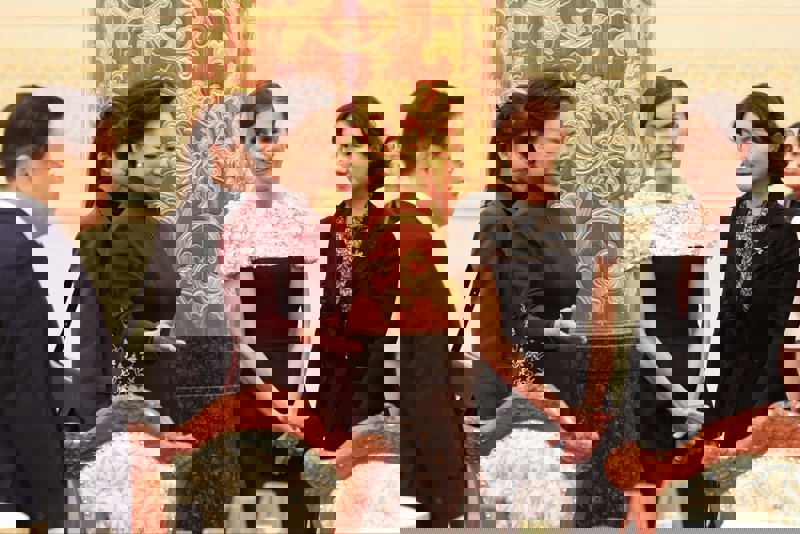 Letizia rescata -y deslumbra- en China con el vestido de perlas y lentejuelas de Carolina Herrera