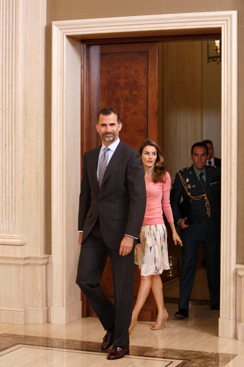 Loa aires de Zarzuela agitan la falda de Letizia Ortiz