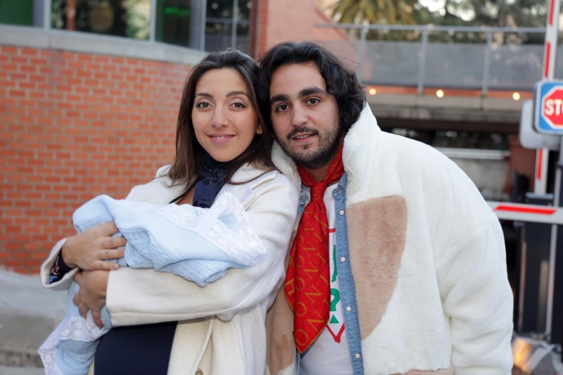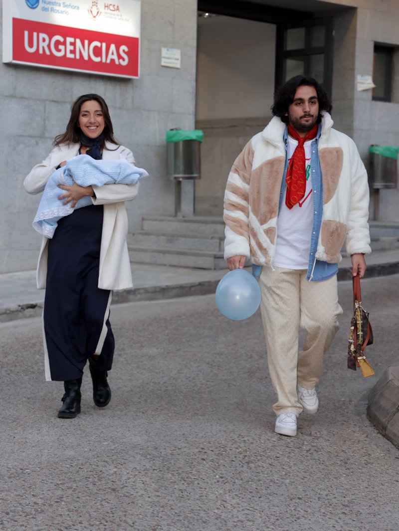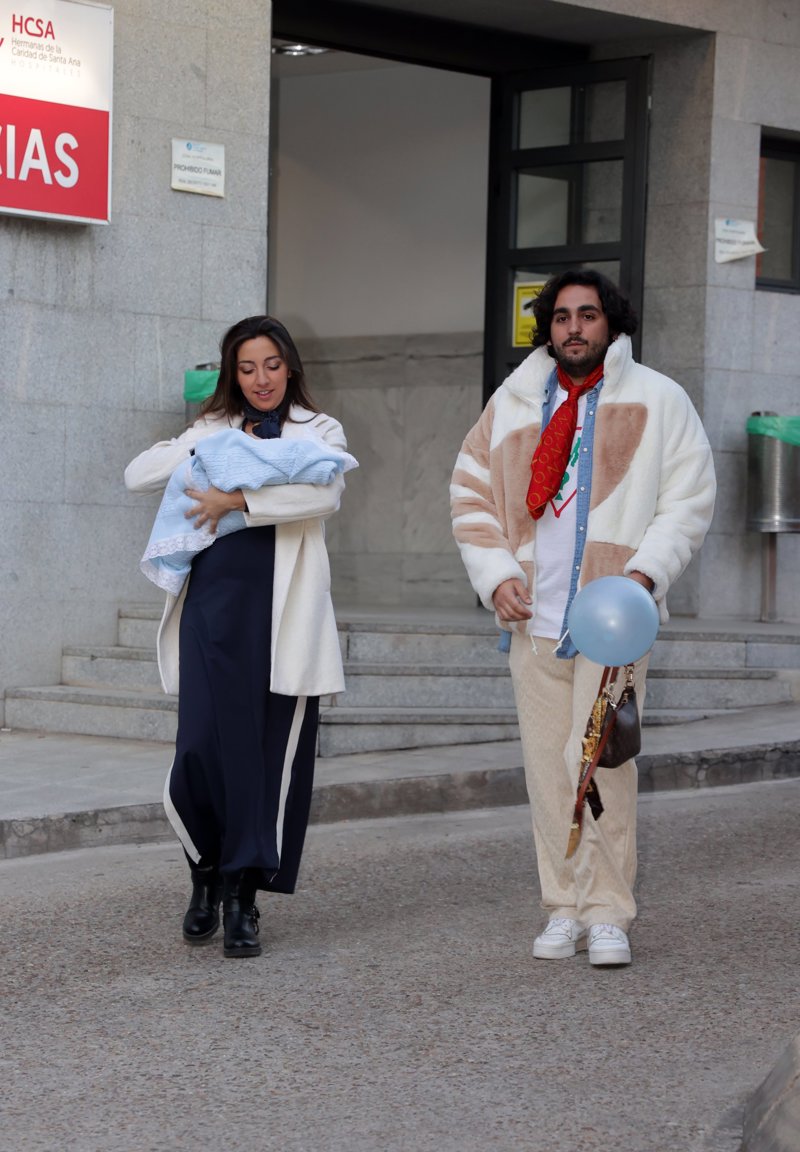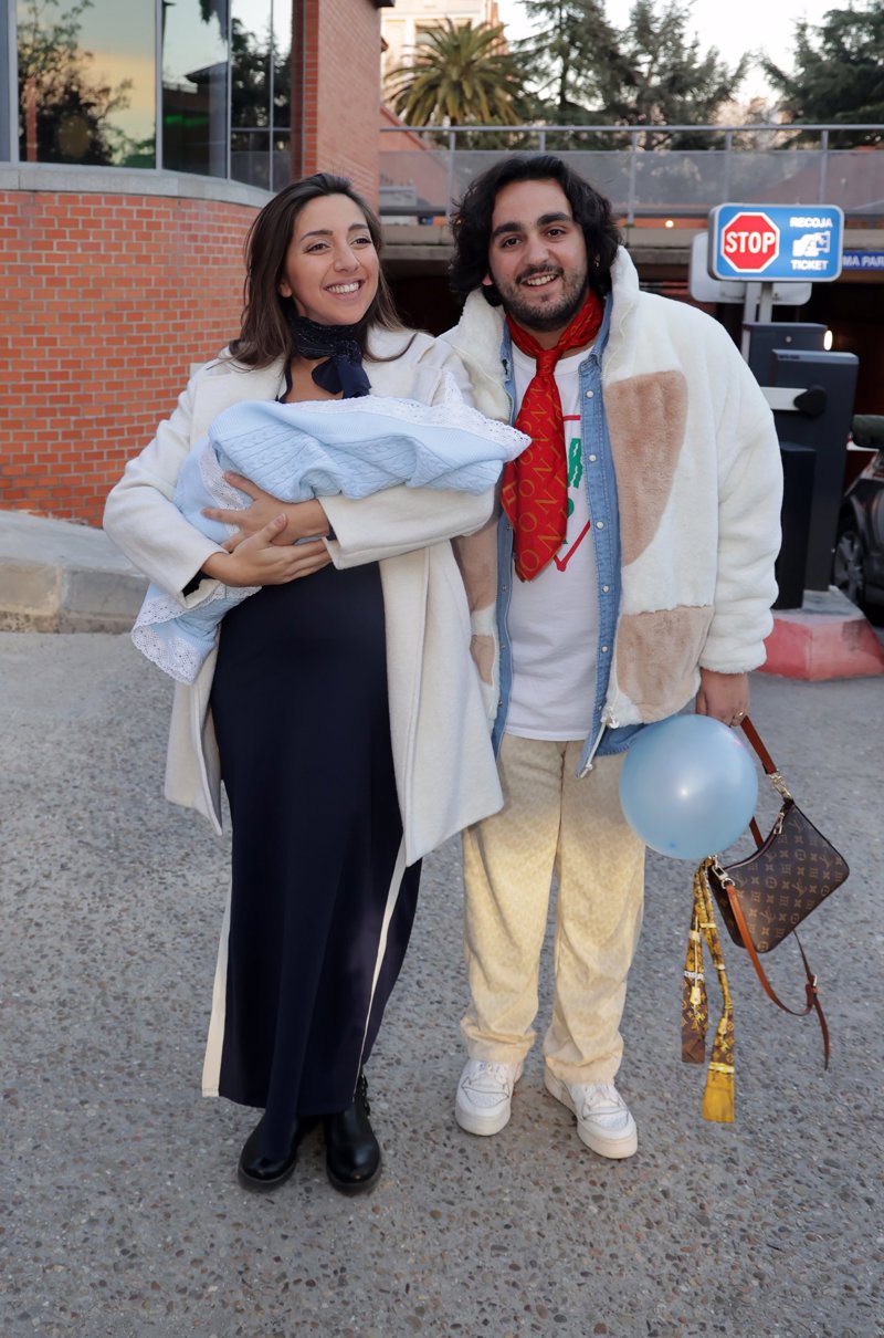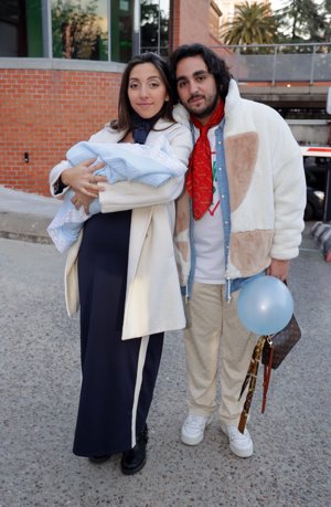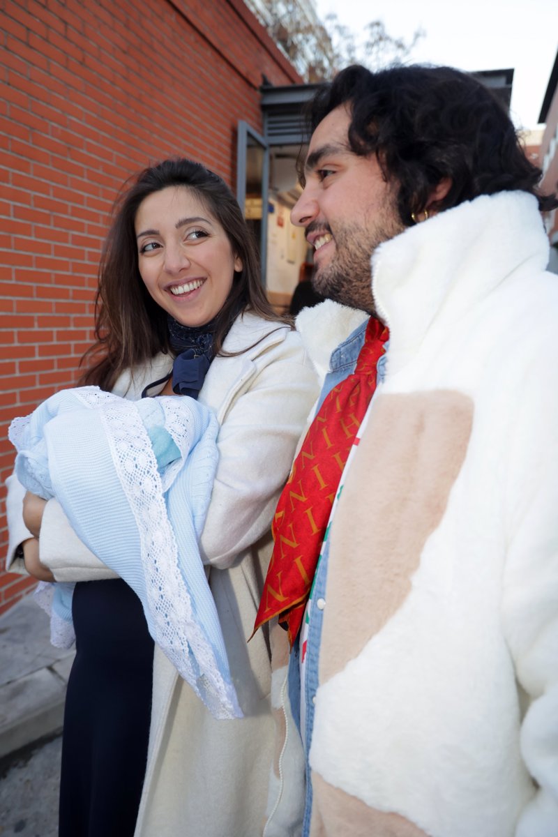 Lucía Fernanda Carmona e Ismael de la Rosa presentan a su primer hijo a la salida del hospital