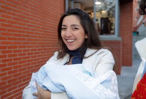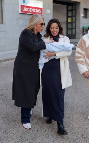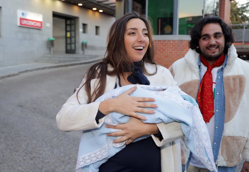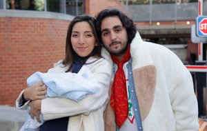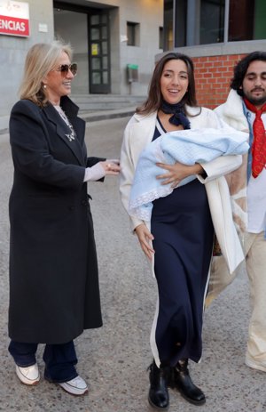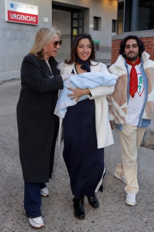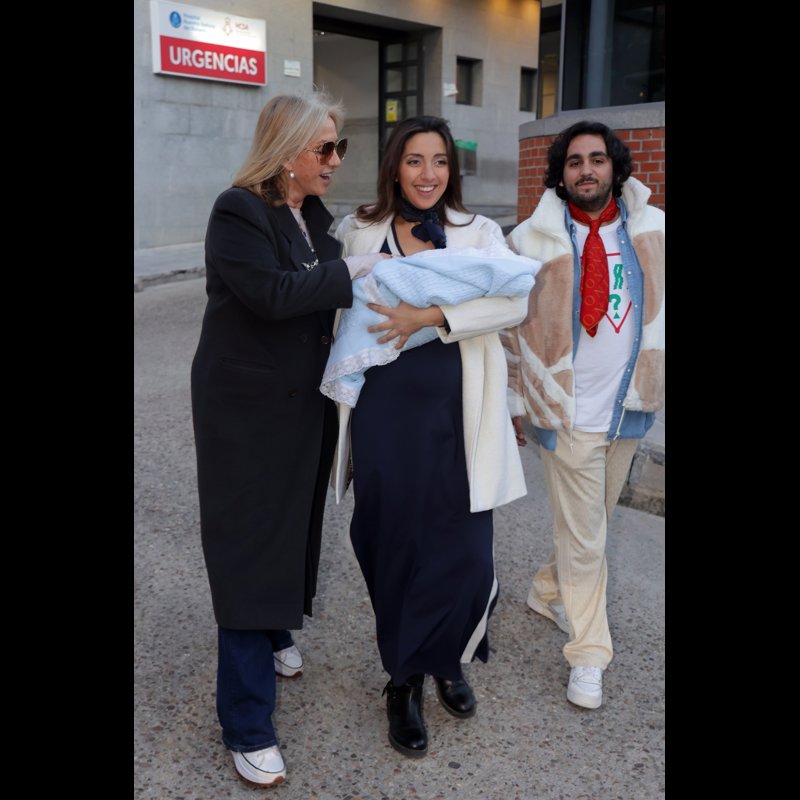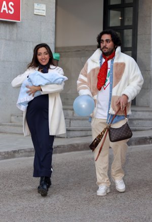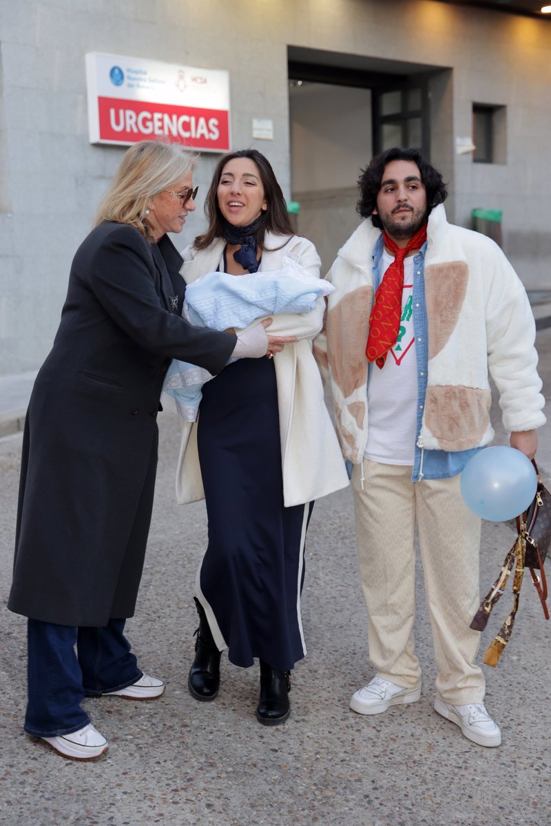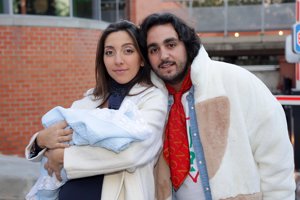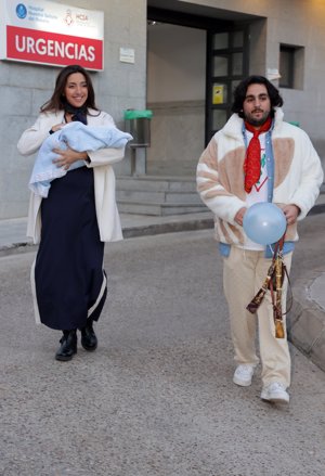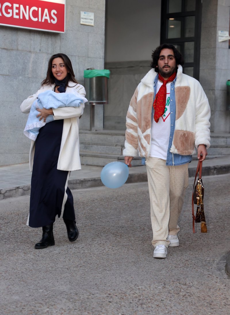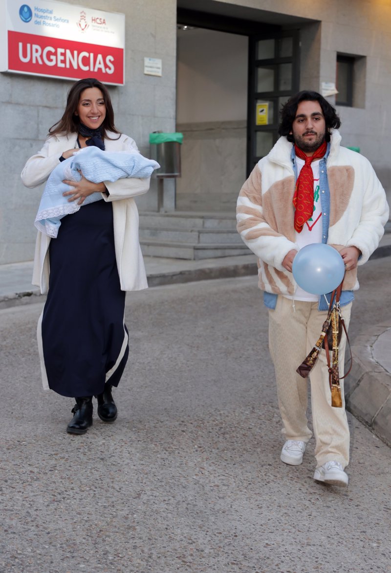 Lucía Fernanda Carmona e Ismael de la Rosa presentan a su primer hijo a la salida del hospital