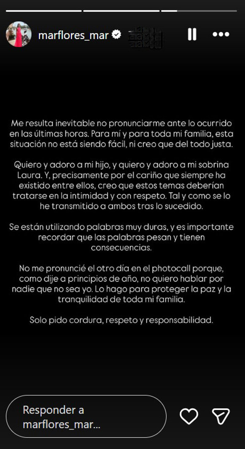 Mar Flores da un paso al frente en la guerra de Carlo Costanzia y Laura Matamoros: "Pido cordura y respeto"
