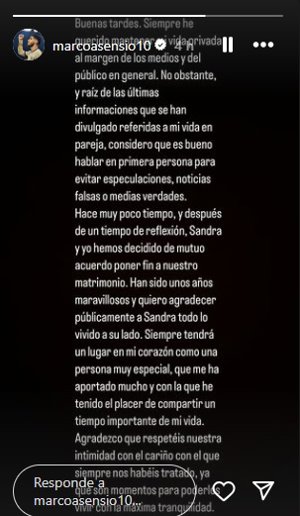 Marco Asensio y Sandra Garal hacen pública su separación definitiva