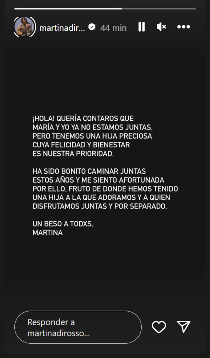 Maria Casado y Martina diRosso rompen su relación tres meses después del nacimiento de su hija Daniela