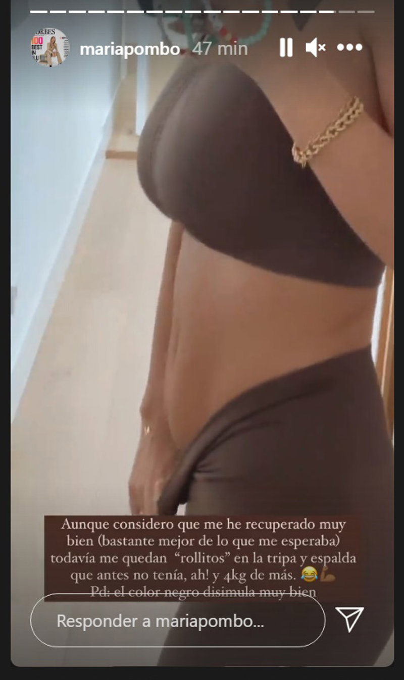 María Pombo muestra el aspecto de su tripa casi dos meses después del nacimiento de su hijo Martín