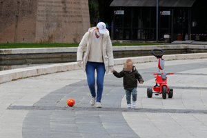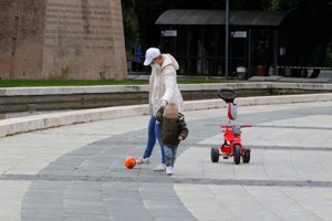 María Zurita disfruta con su hijo Carlitos del primer día de juegos en la calle
