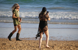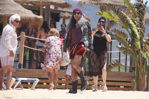 Mario Vaquerizo acapara todas las miradas en las playas de Cádiz con su particular look de 'modelo'