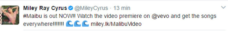 Miley Cyrus estrena el videoclip de Malibu, tras mantener todo el día en vilo a sus fans
