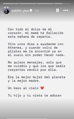 Muere inesperadamente la madre de Pablo Pisa, ex pareja de Patricia Steisy