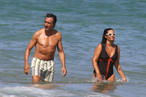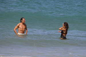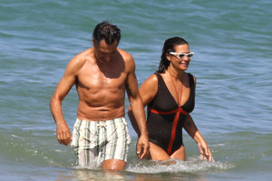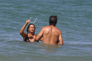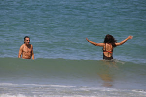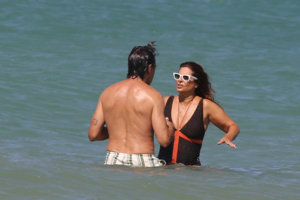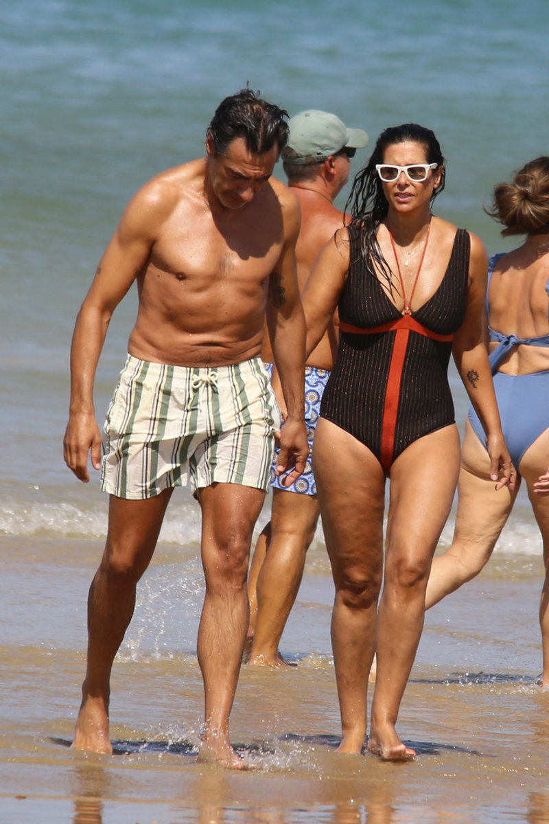 Nuria Roca y Juan del Val, cuerpos 10, besos y complicidad durante su baño más refrescante en las playas de Cádiz