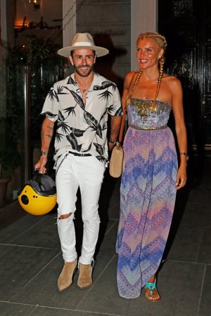 Pelayo Díaz y Esther Cañadas presumen de amistad y disfrutan de una agradable noche de verano en Madrid