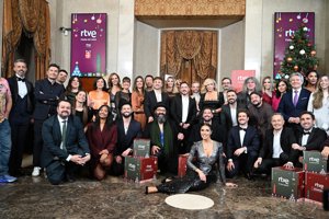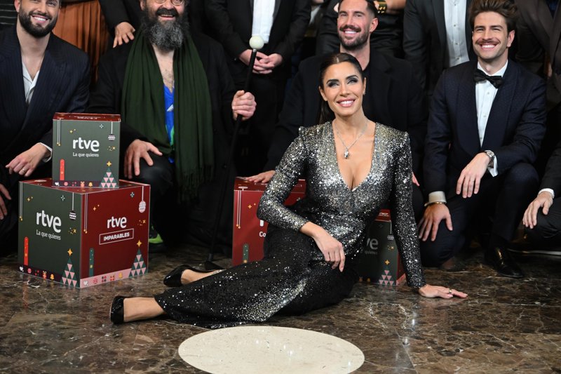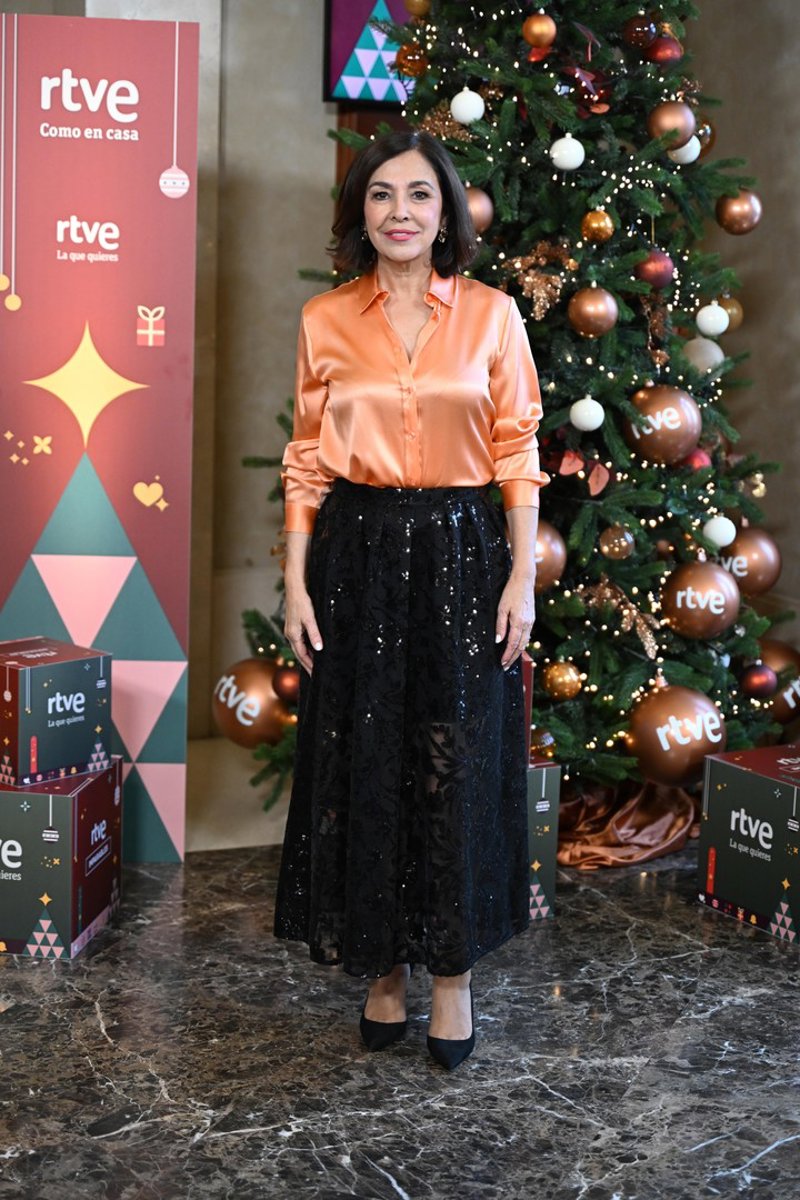 Pilar Rubio brilla con luz propia con un mono de inspiración 'glam' en el brindis navideño de RTVE