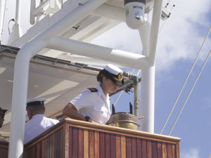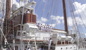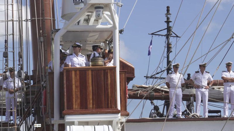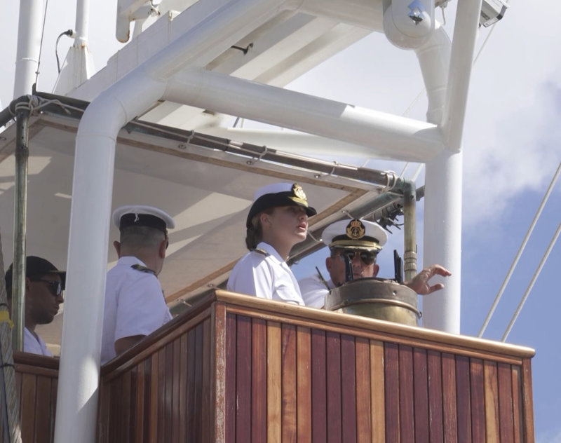 La Princesa Leonor, al timón del Juan Sebastián Elcano a su llegada a República Dominicana