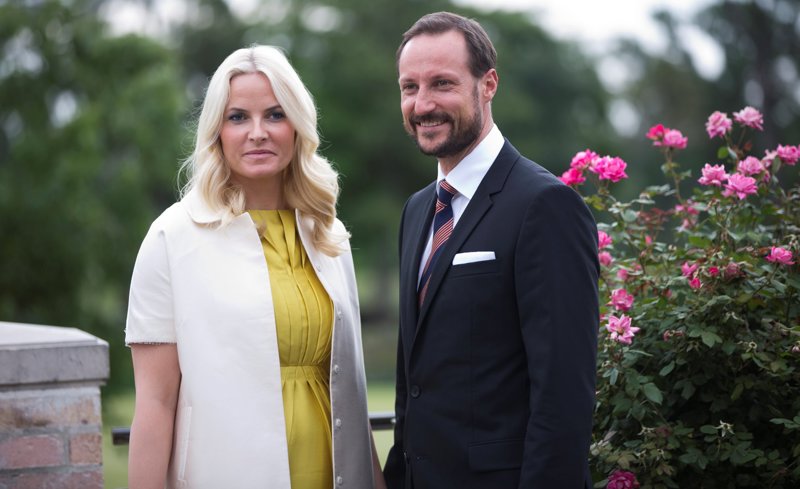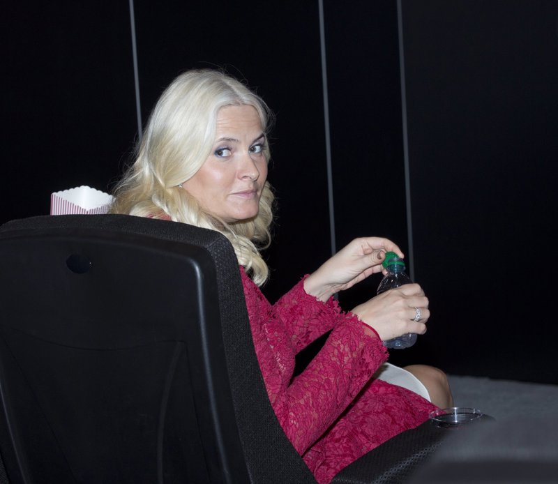 Los Príncipes de Noruega sentados como en el sofá de su casa comiendo palomitas