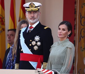 La Reina Letizia, acierto total con un vestido de lunares en el desfile de la Fiesta Nacional
