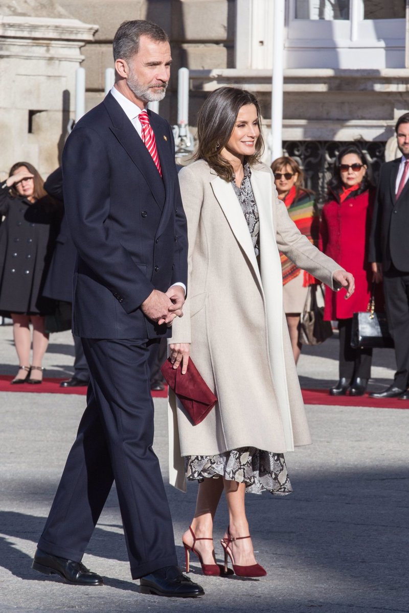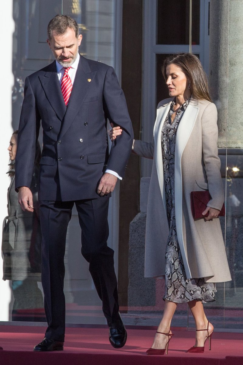 La Reina Letizia apuesta por el estampado de serpiente, ahora en vestido