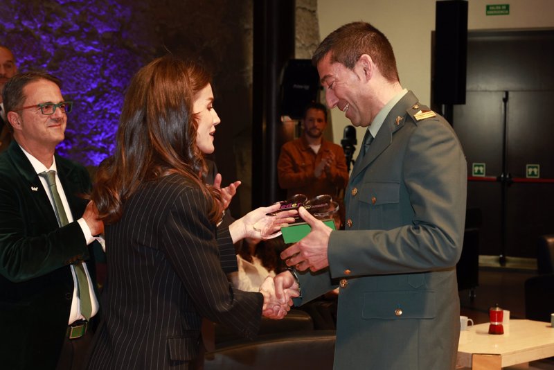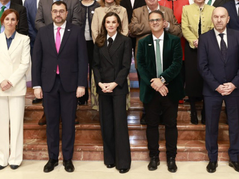 La Reina Letizia arrasa en su regreso a Oviedo con traje masculino de raya diplomática ¡y corbata!
