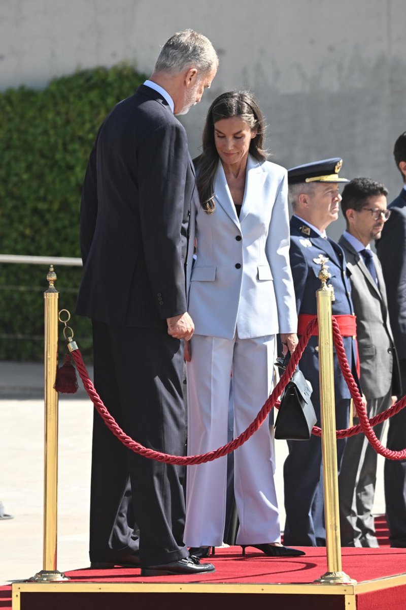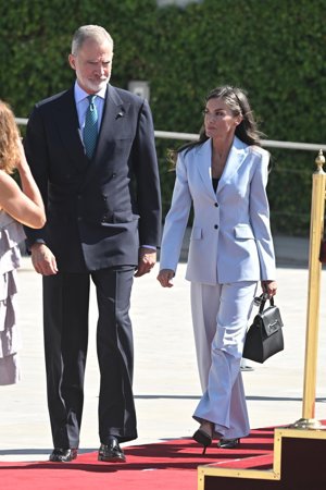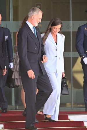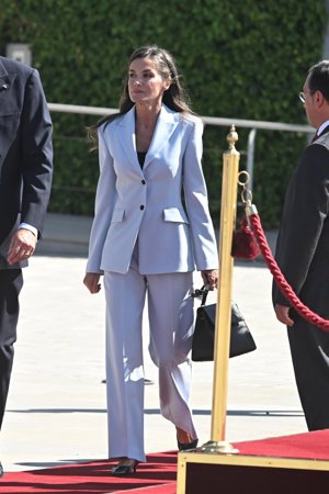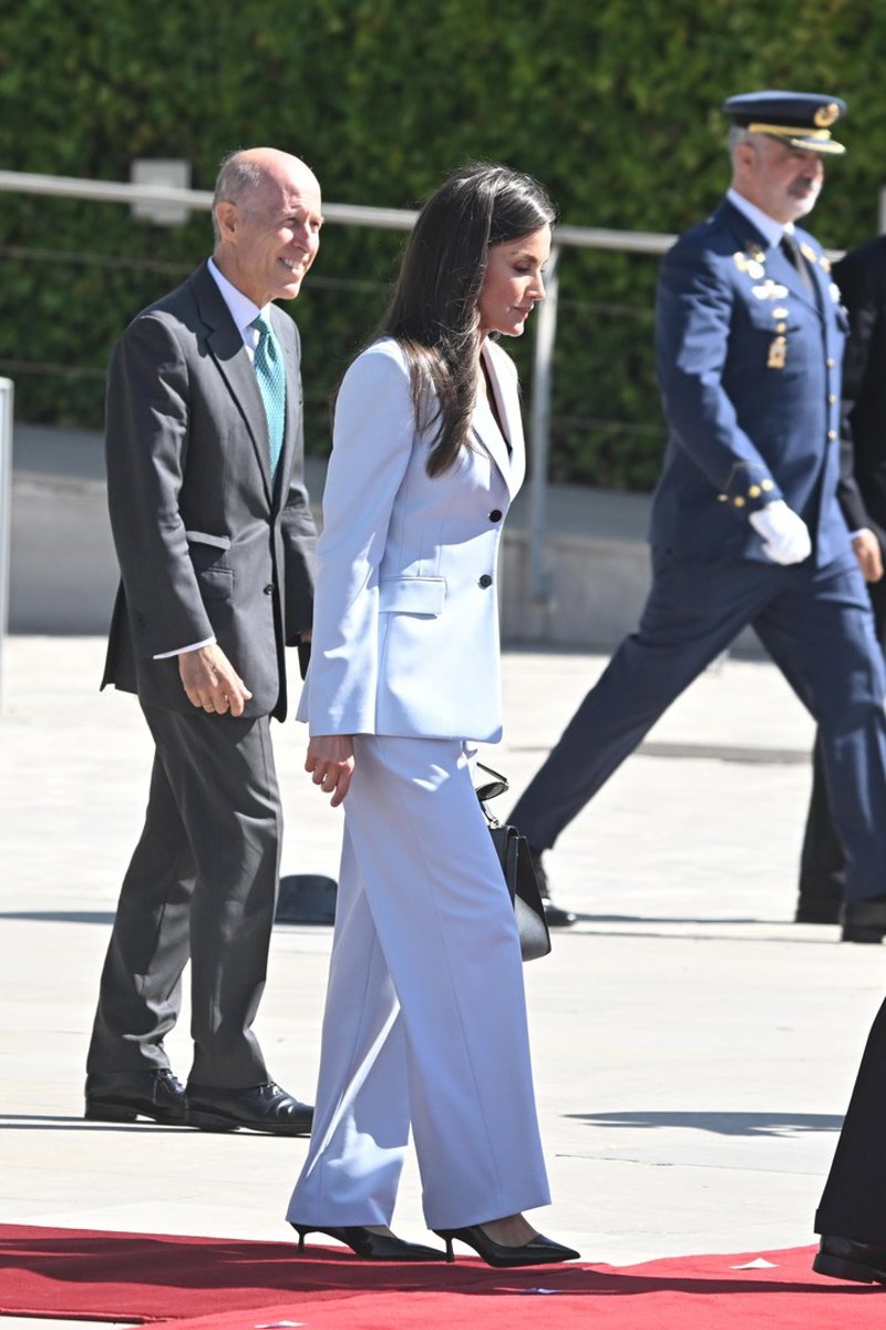 La Reina Letizia arrasa con un traje 'reciclado' azul bebé en su reaparición tras su 53 cumpleaños