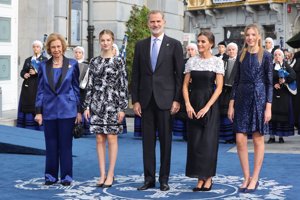 La Reina Letizia brilla con un espectacular vestido bicolor de Carolina Herrera