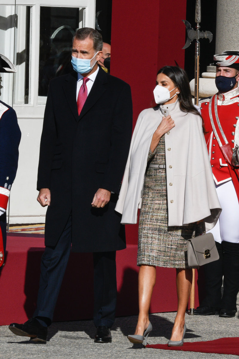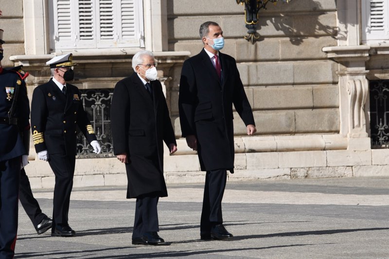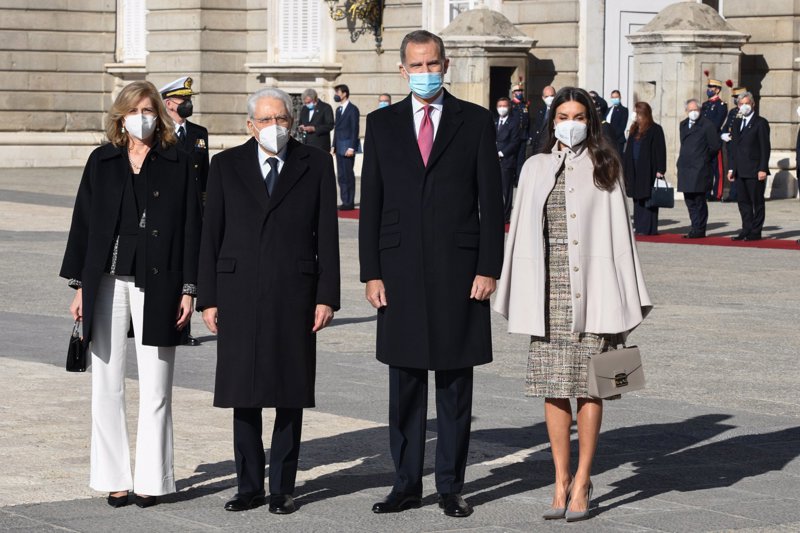 La Reina Letizia, con capa y guiño a Italia, enamora en el recibimiento a Sergio Mattarella en el Palacio Real