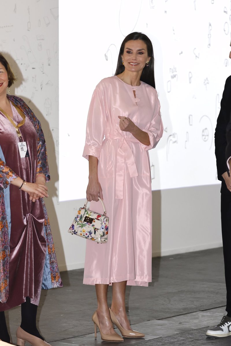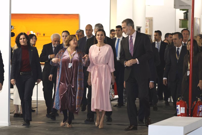 La Reina Letizia cumple con los pronósticos y brilla en ARCO con un dulce vestido rosa de rebajas