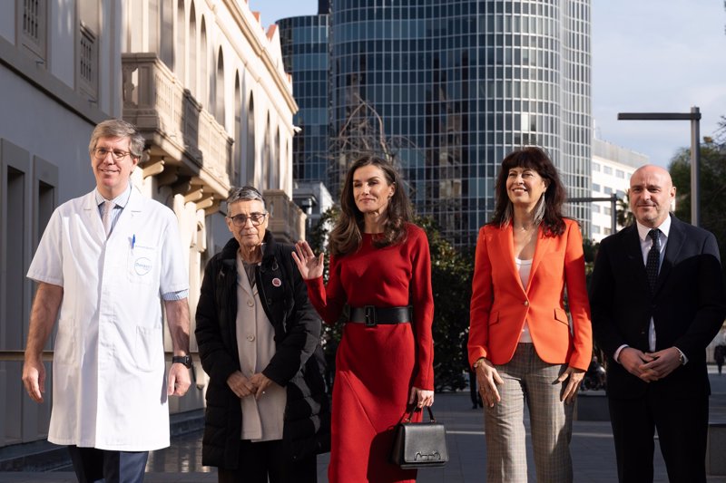 La Reina Letizia desafía al frío y arrasa en su visita a Barcelona con un vestido de punto rojo que hace tipazo