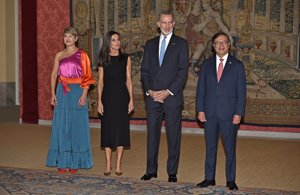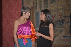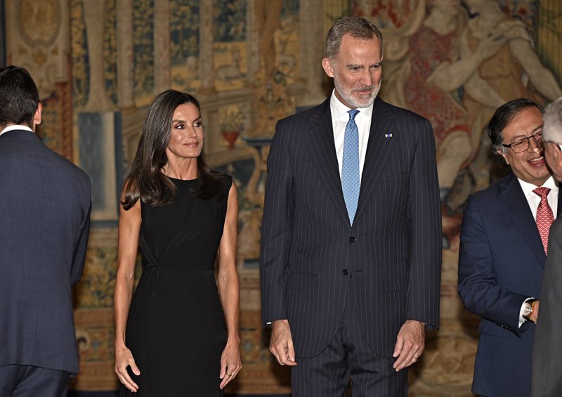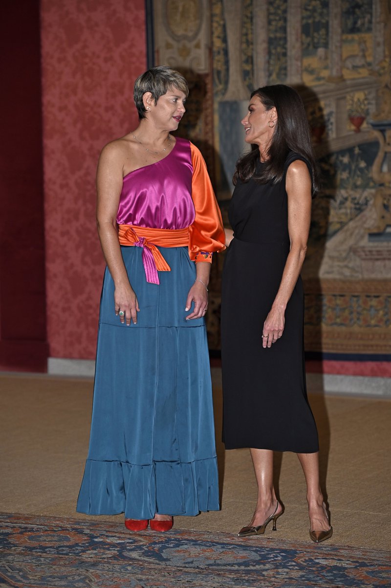La Reina Letizia eclipsa con un vestido negro y zapatos de tacón mini dorados