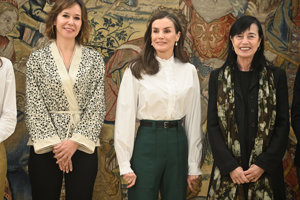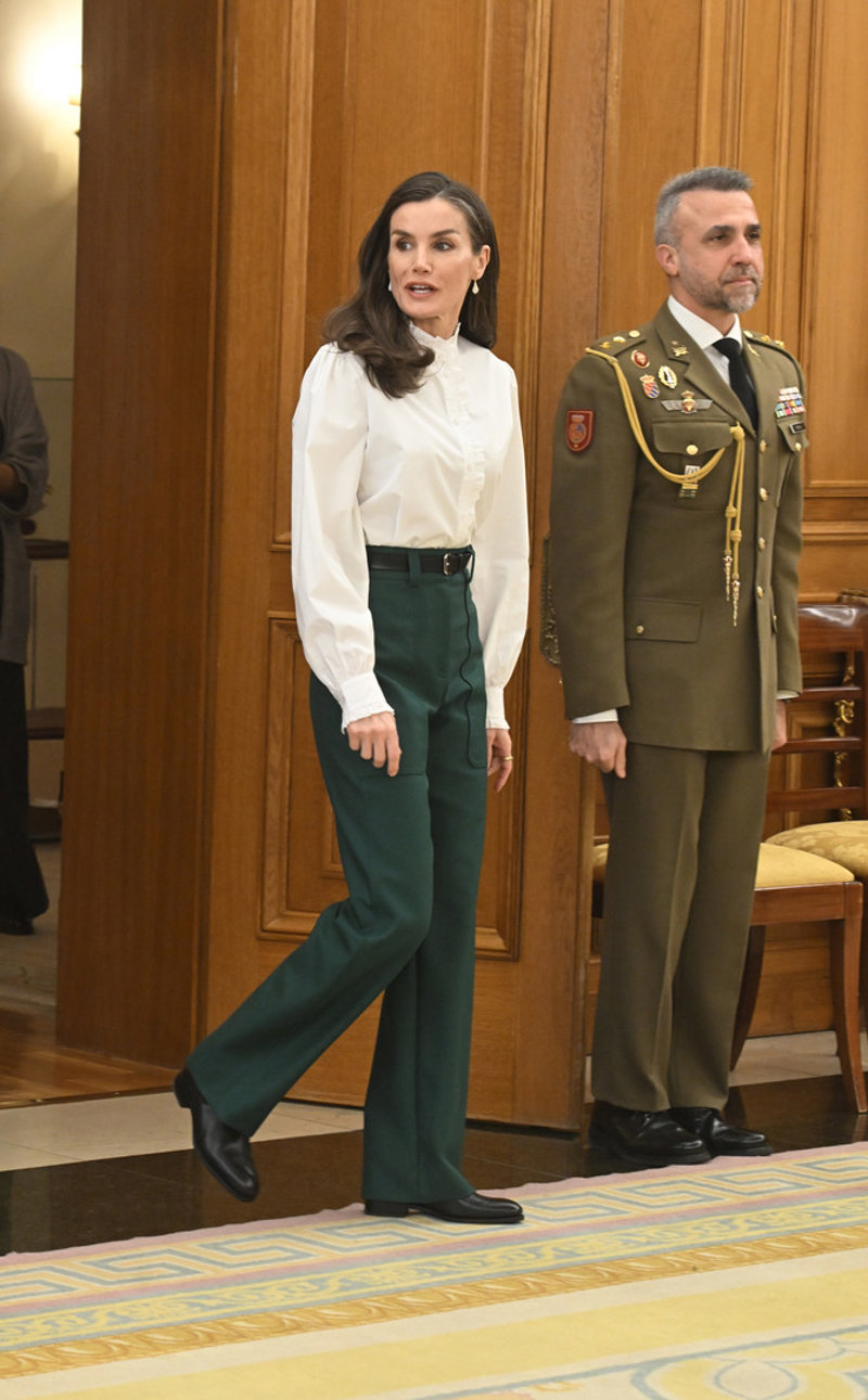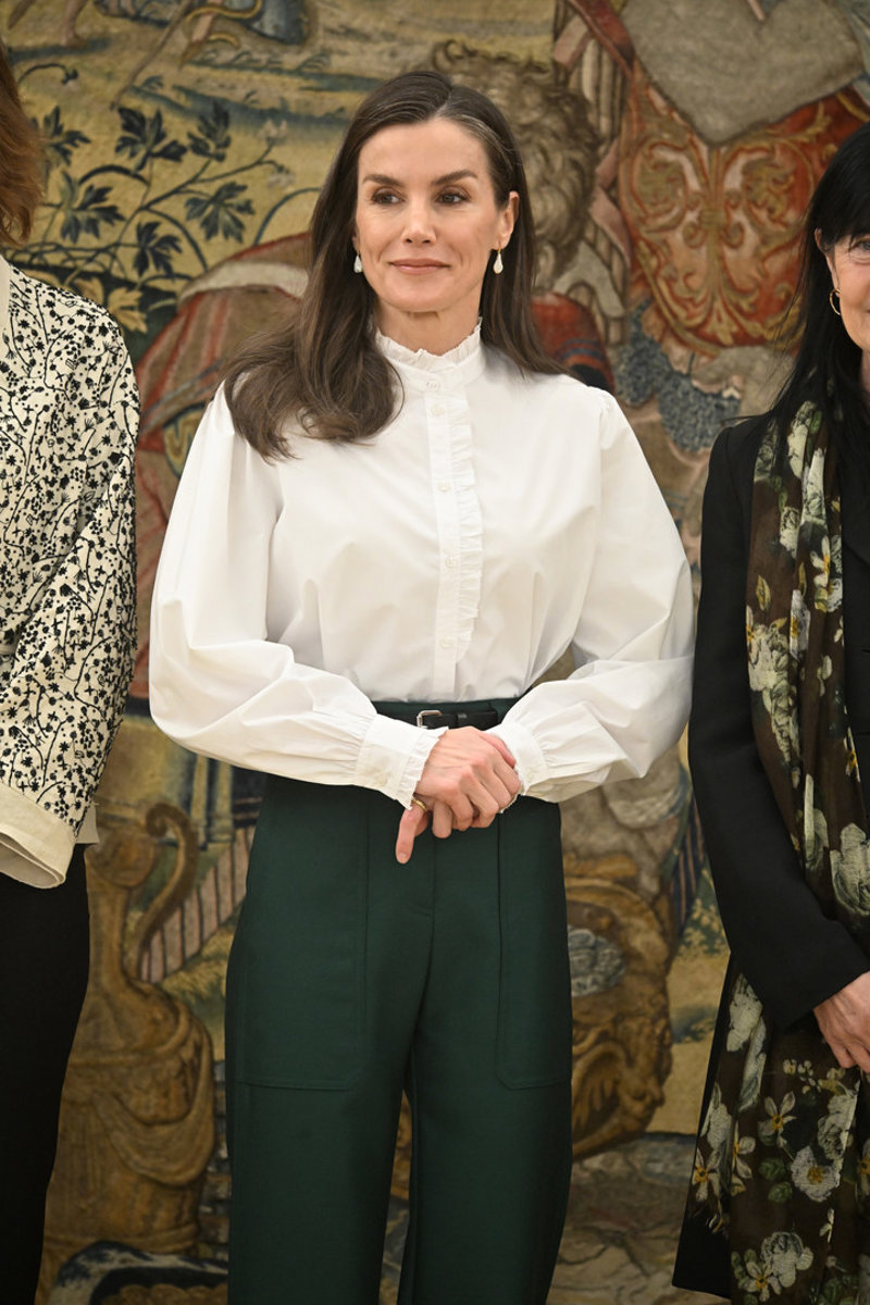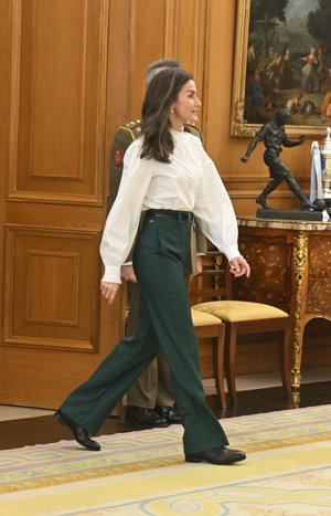 La Reina Letizia estiliza su figura al máximo con un pantalón 'efecto piernas infinitas' y blusa romántica
