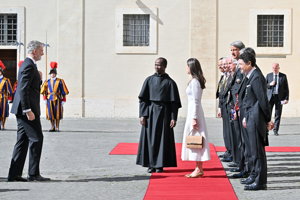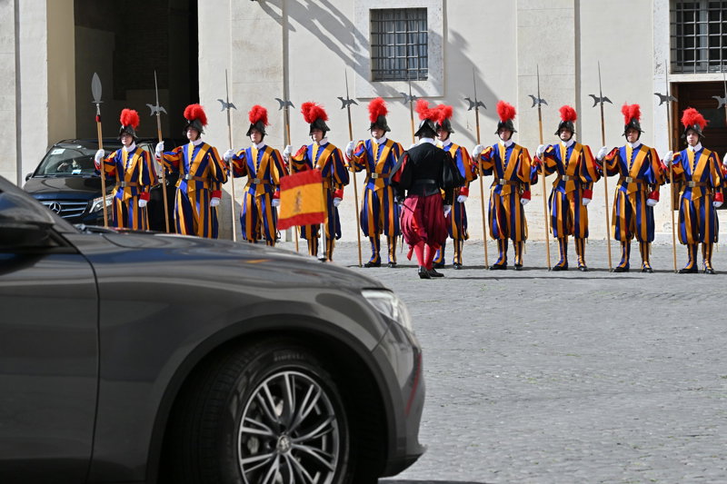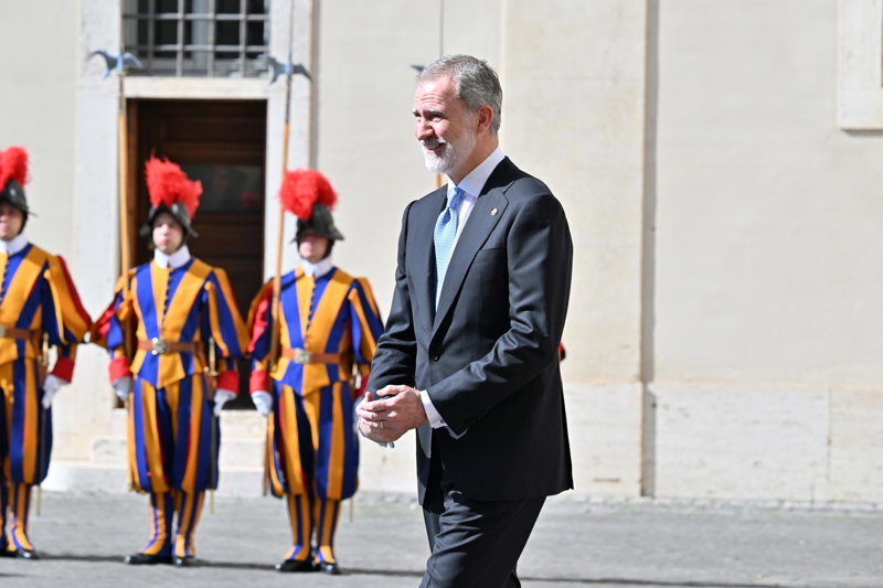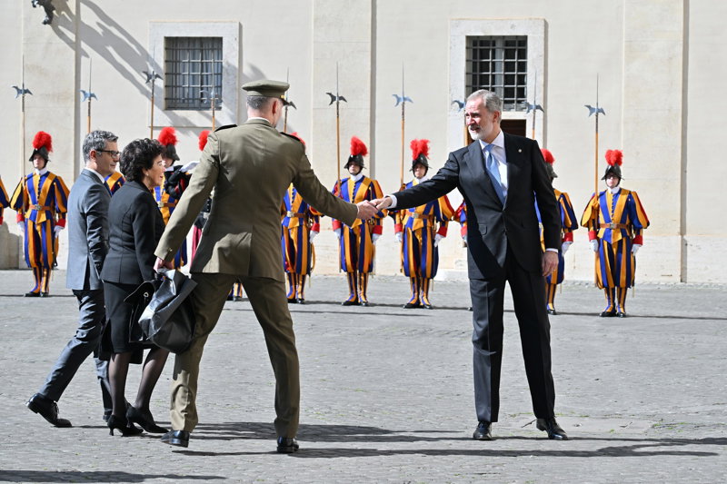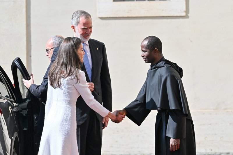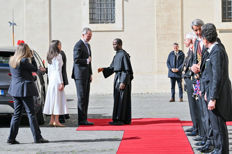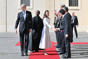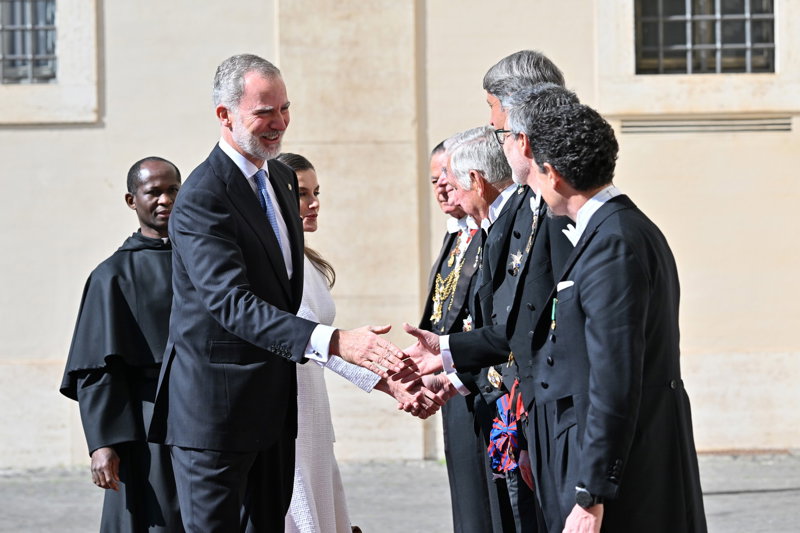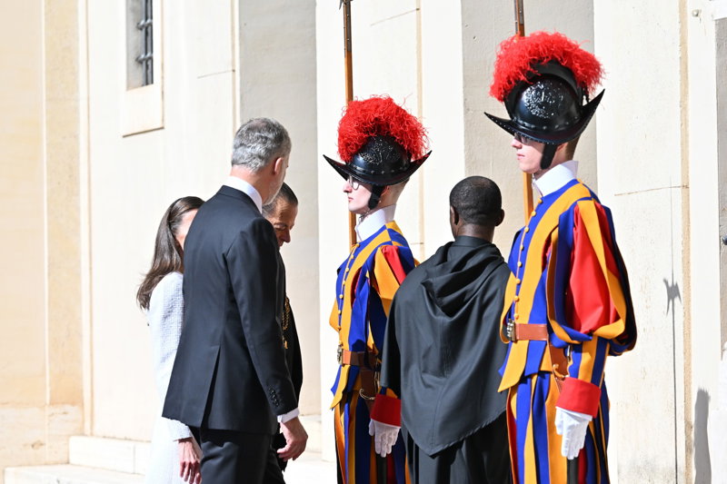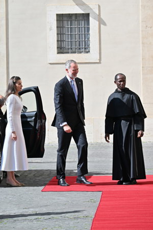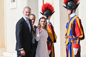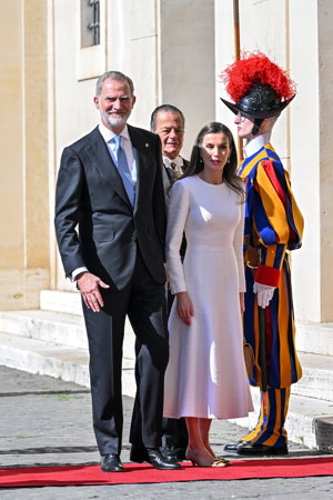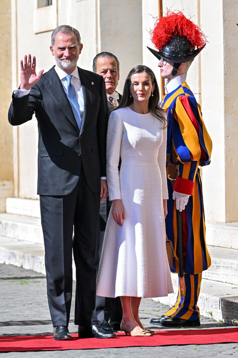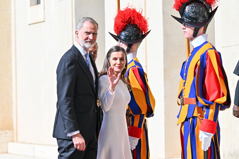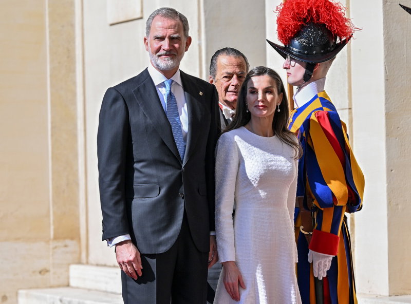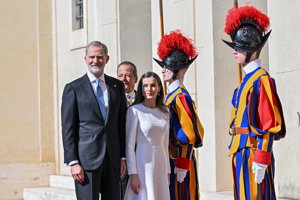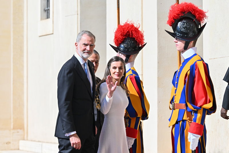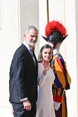La Reina Letizia hace uso de su 'privilegio blanco' y deslumbra, sin mantilla, en su encuentro con el Papa León XIV
