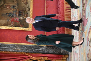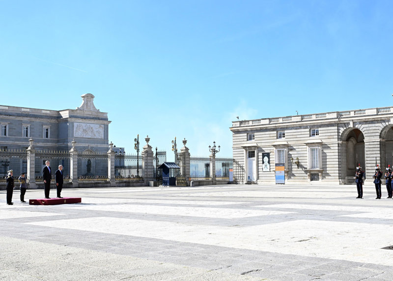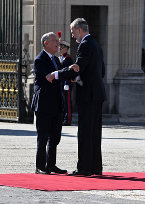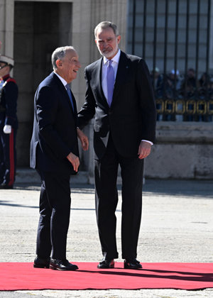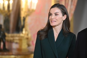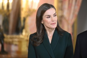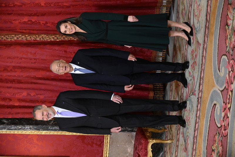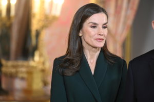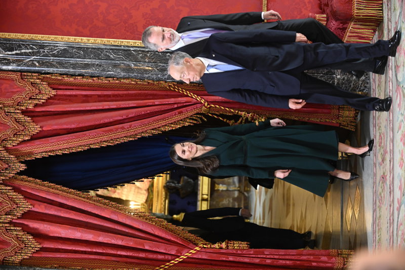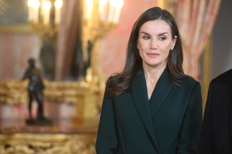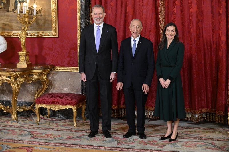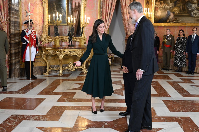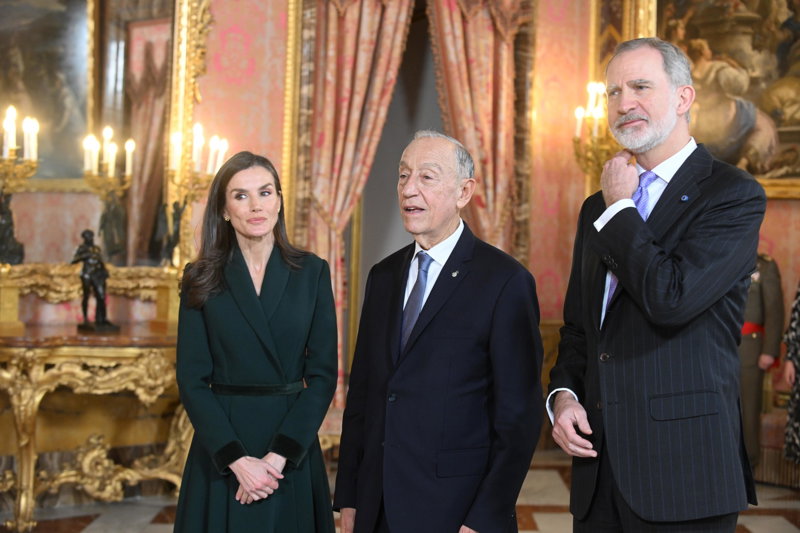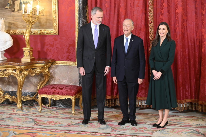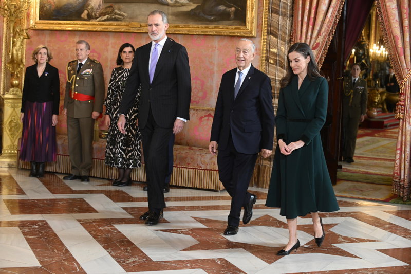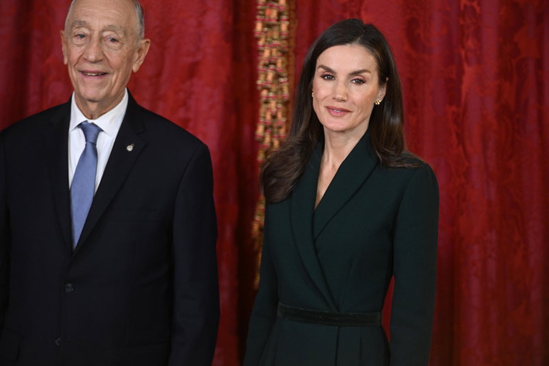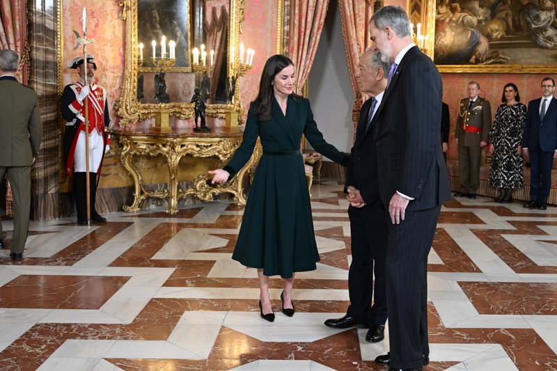 La Reina Letizia, impecable, rescata su precioso vestido abrigo verde en su encuentro con Rebelo de Sousa