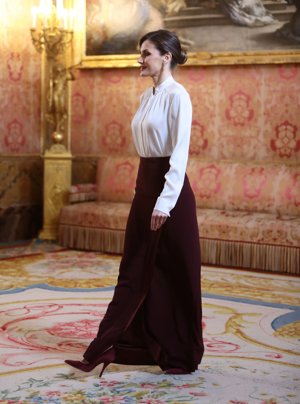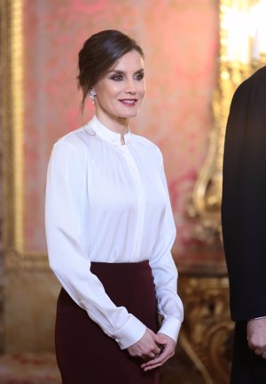 La Reina Letizia incluye su prenda favorita en su look más sobrio