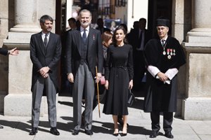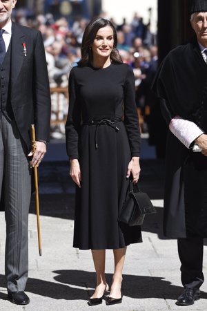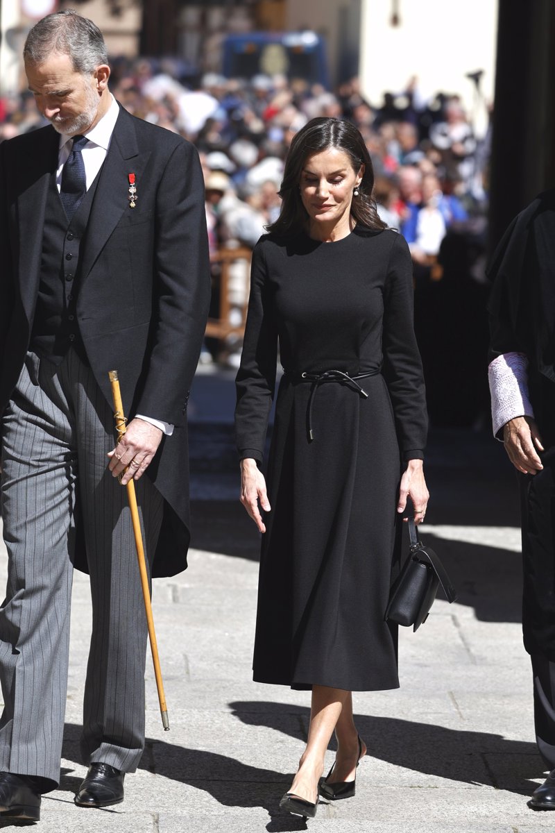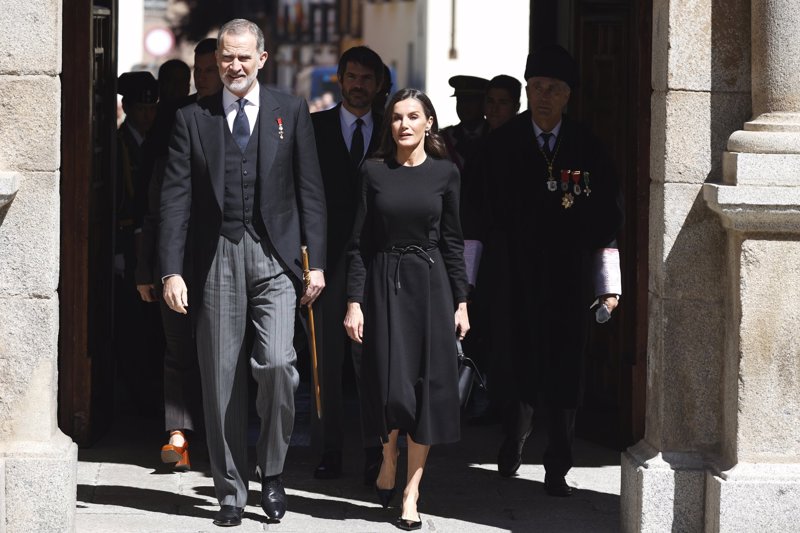 La Reina Letizia luce su look más sobrio en el Premio 'Miguel de Cervantes' en señal de respeto al Papa Francisco