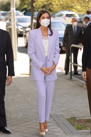 La Reina Letizia luce su traje más elegante de color lila