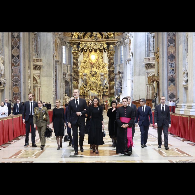 La Reina Letizia, de luto riguroso y con mantilla en el funeral del Papa Francisco