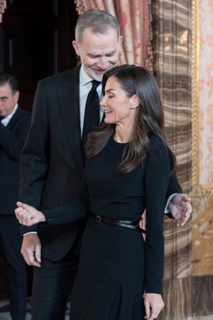 La Reina Letizia, de luto riguroso por la muerte del Papa Francisco en el almuerzo por el Premio 'Miguel de Cervantes'