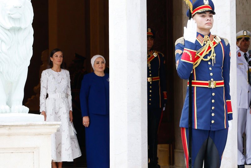 La Reina Letizia, majestuosa, estrena el vestido perfecto en El Cairo: blanco, delicado y con vuelo