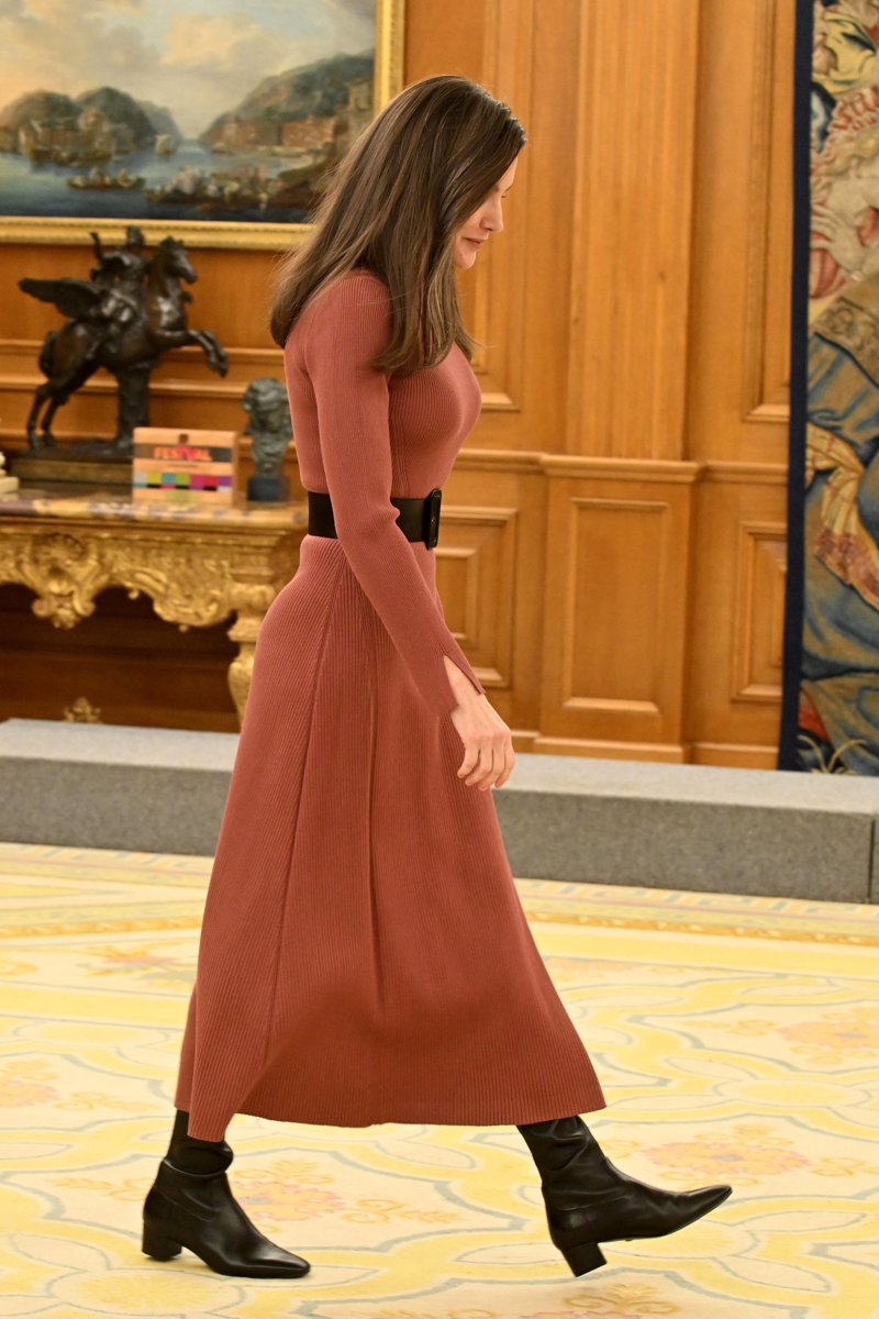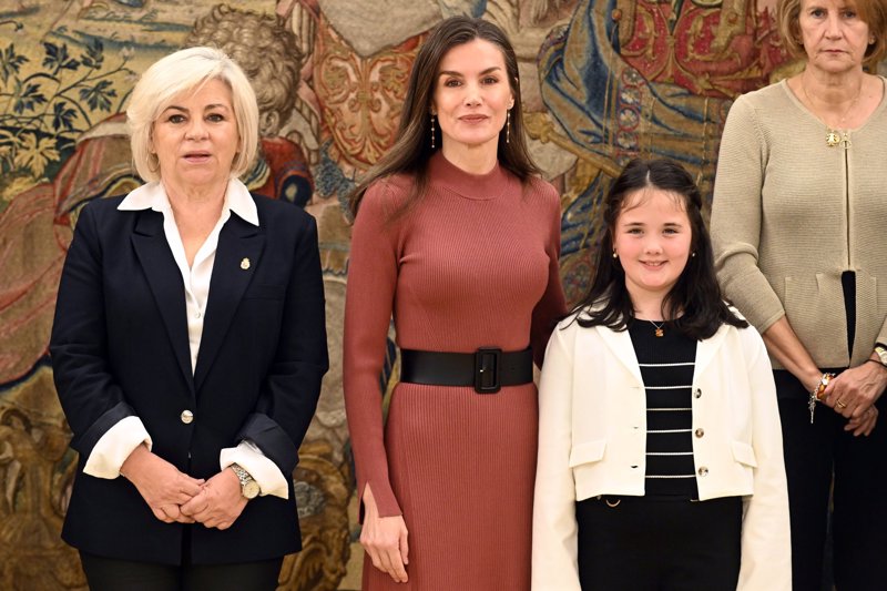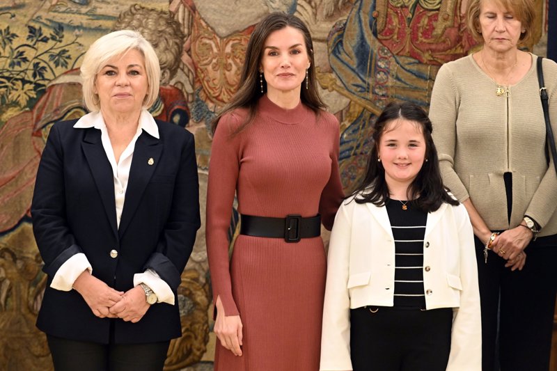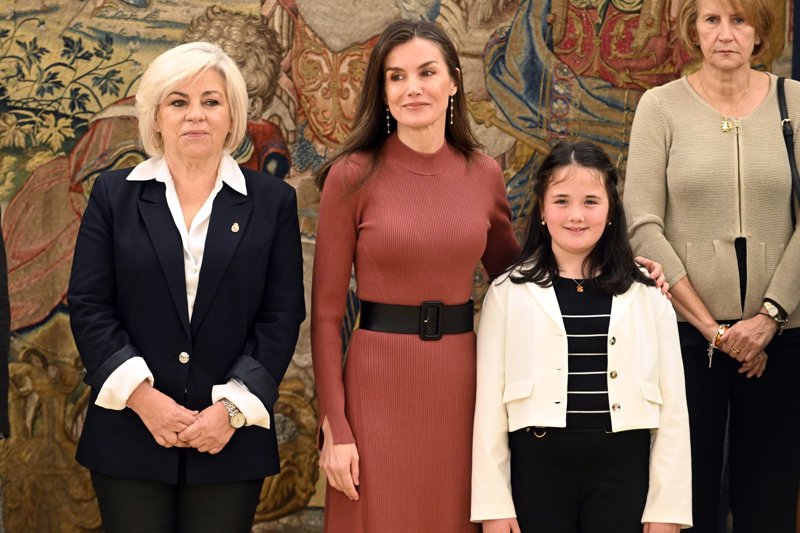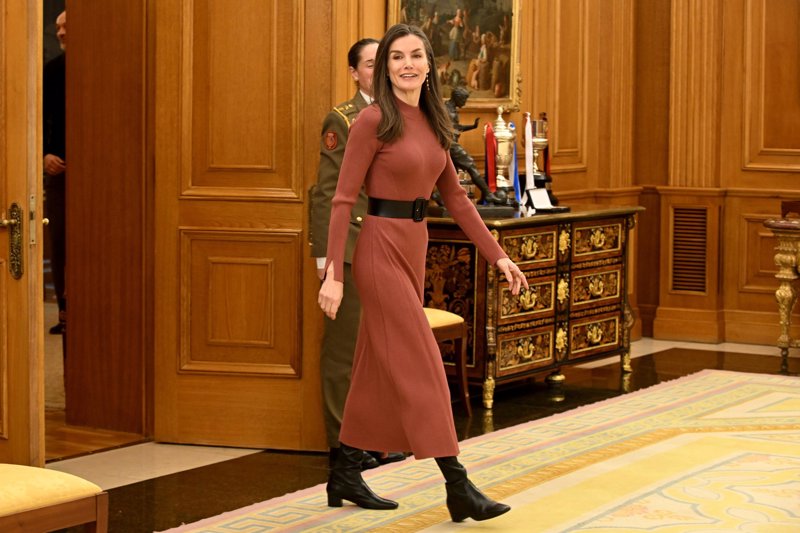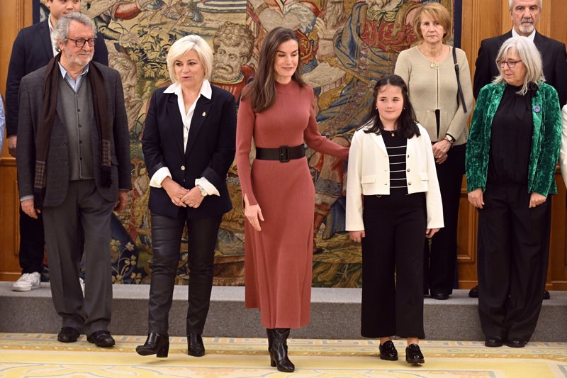 La Reina Letizia, nuevo guiño a los afectados por la DANA con un vestido de punto color teja que hace tipazo