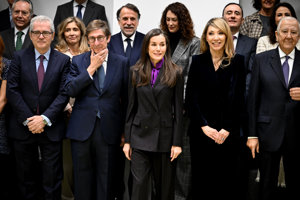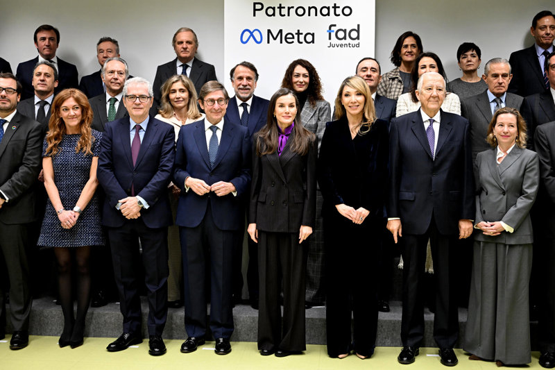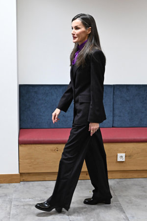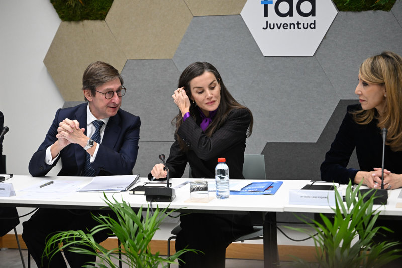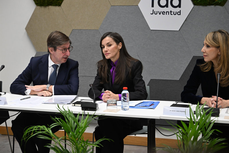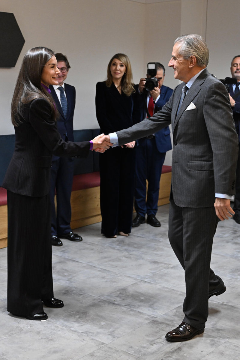 La Reina Letizia, pura sofisticación con traje de raya diplomática y blusa con lazada inspirada en Kate Middleton