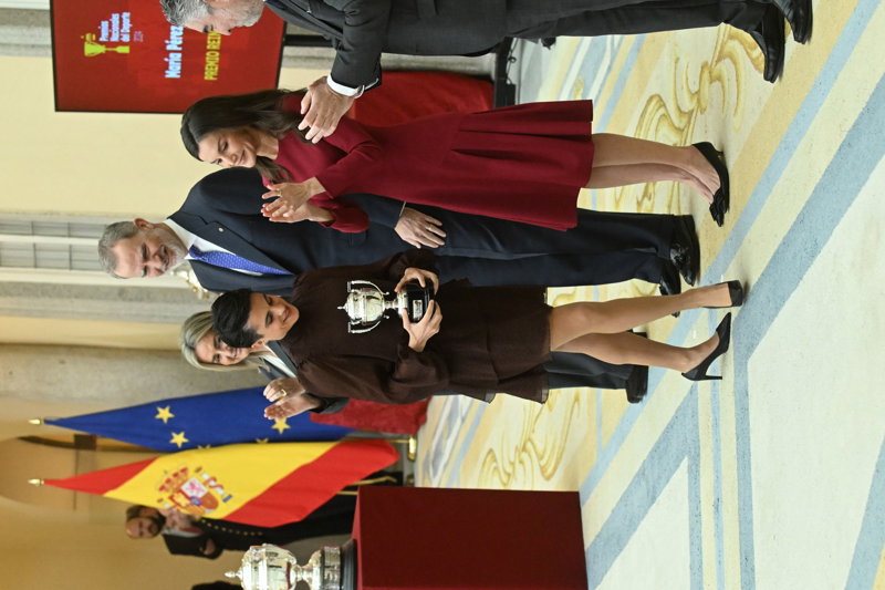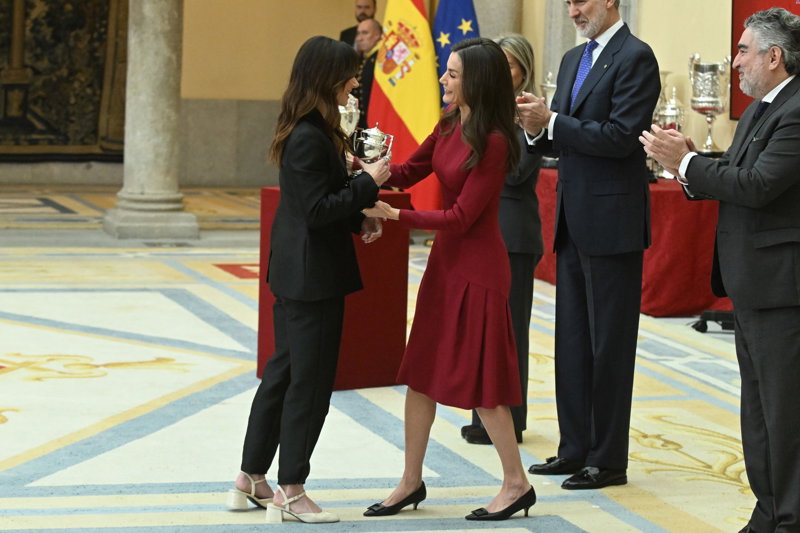La Reina Letizia recupera su vestido burdeos 'efecto tipazo' de Carolina Herrera en los Premios Nacionales del Deporte
