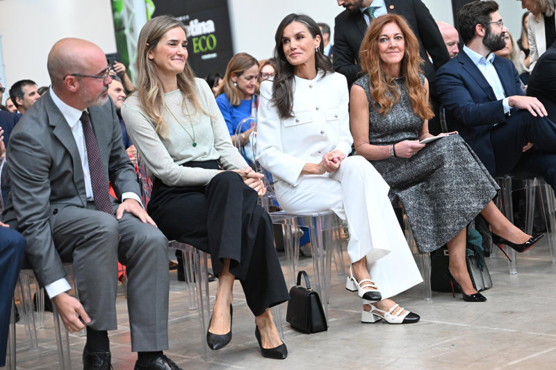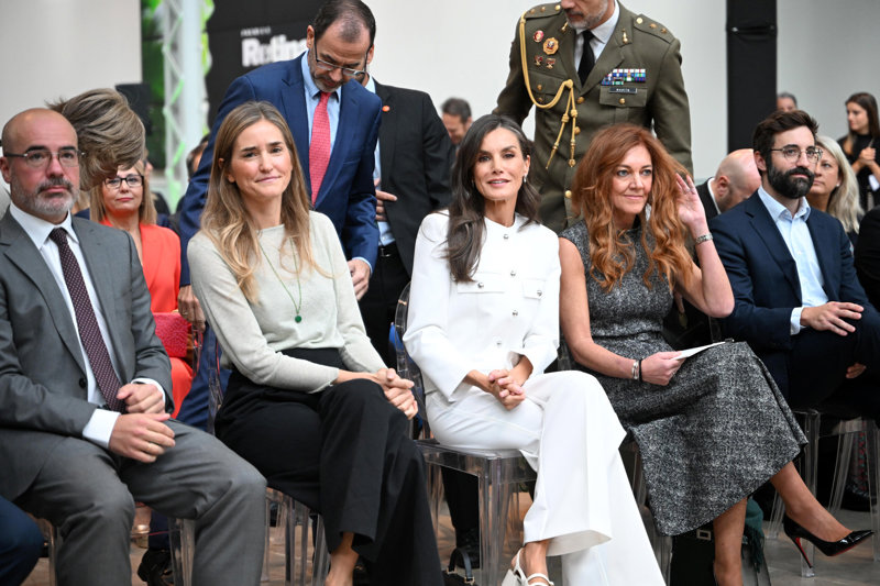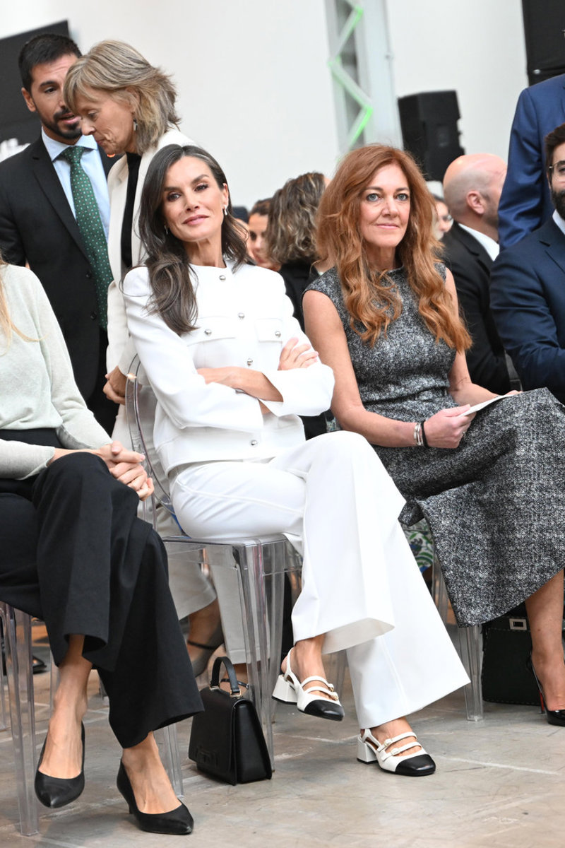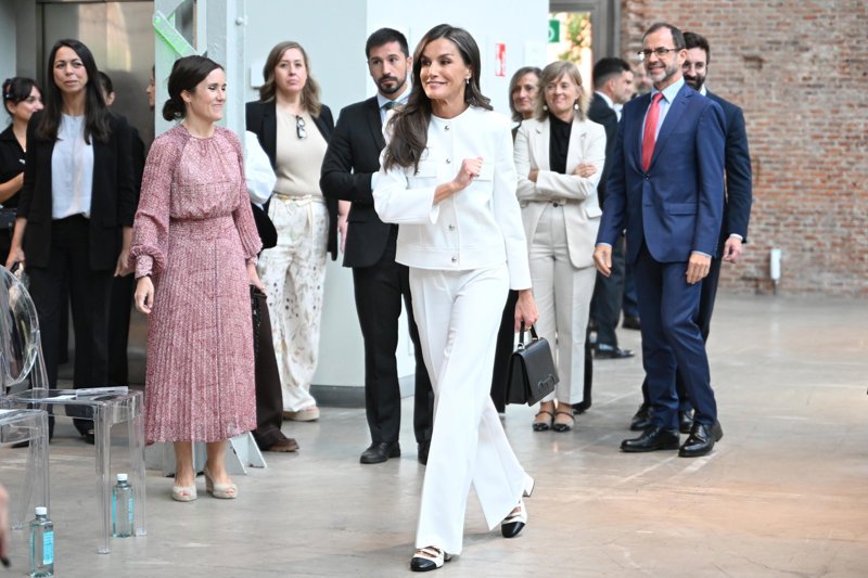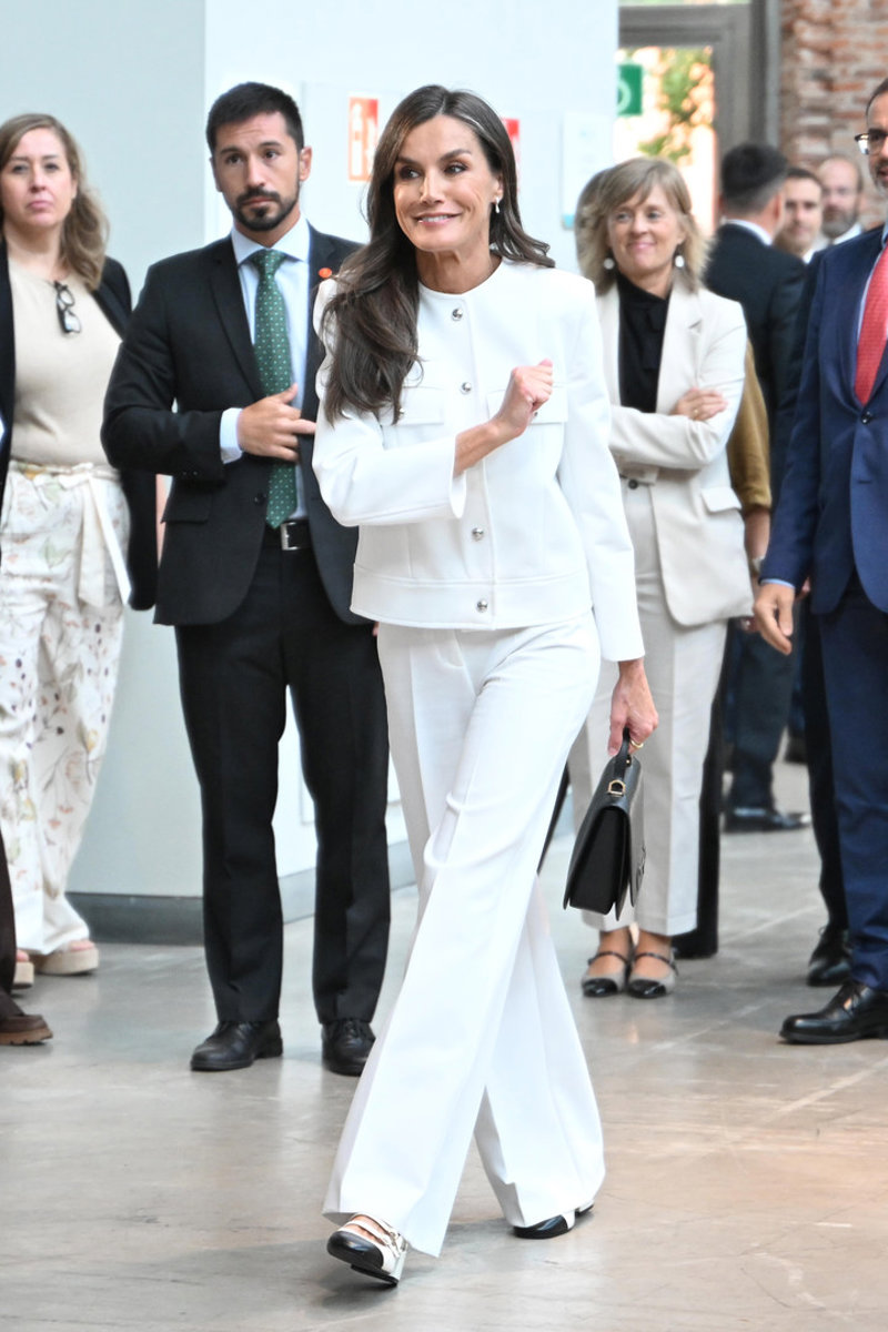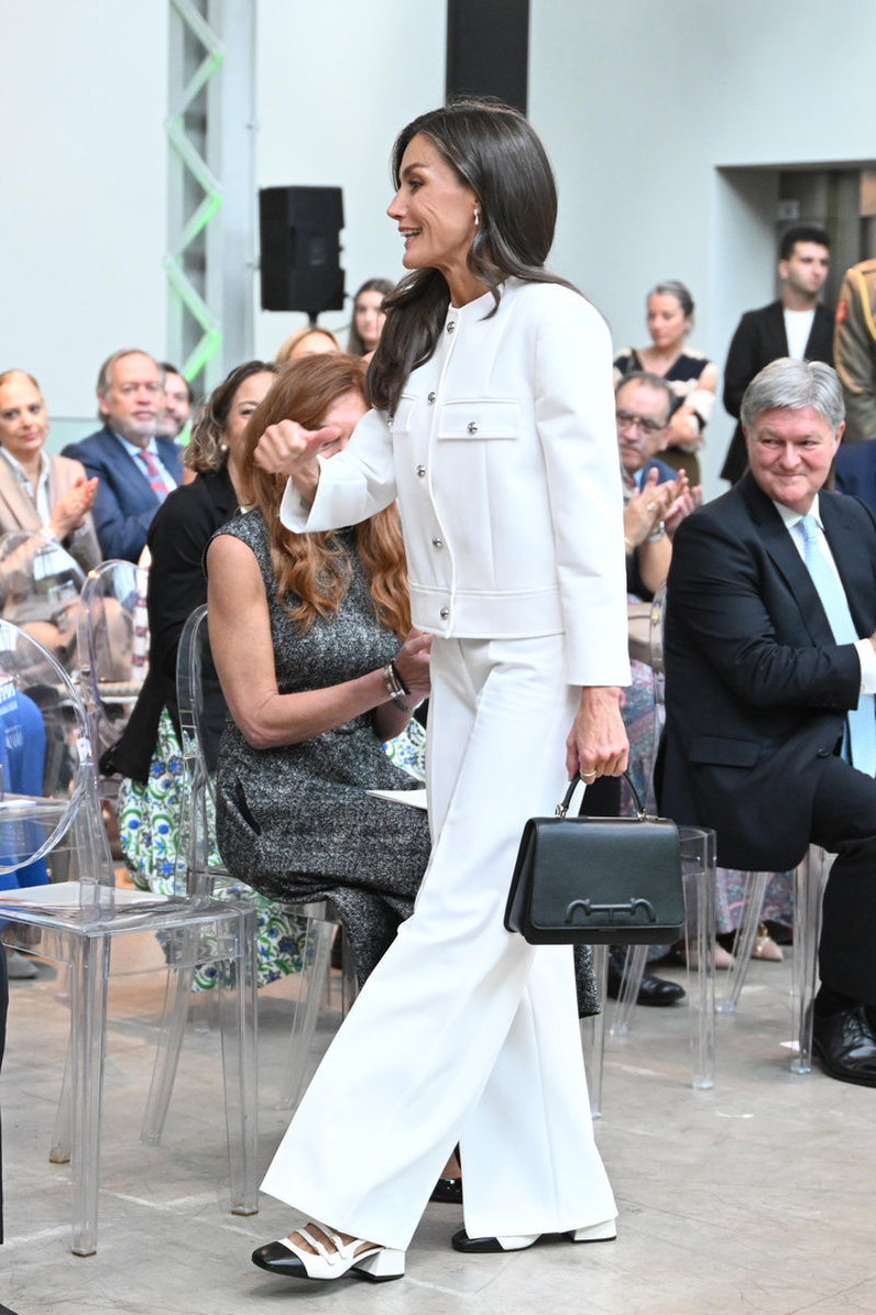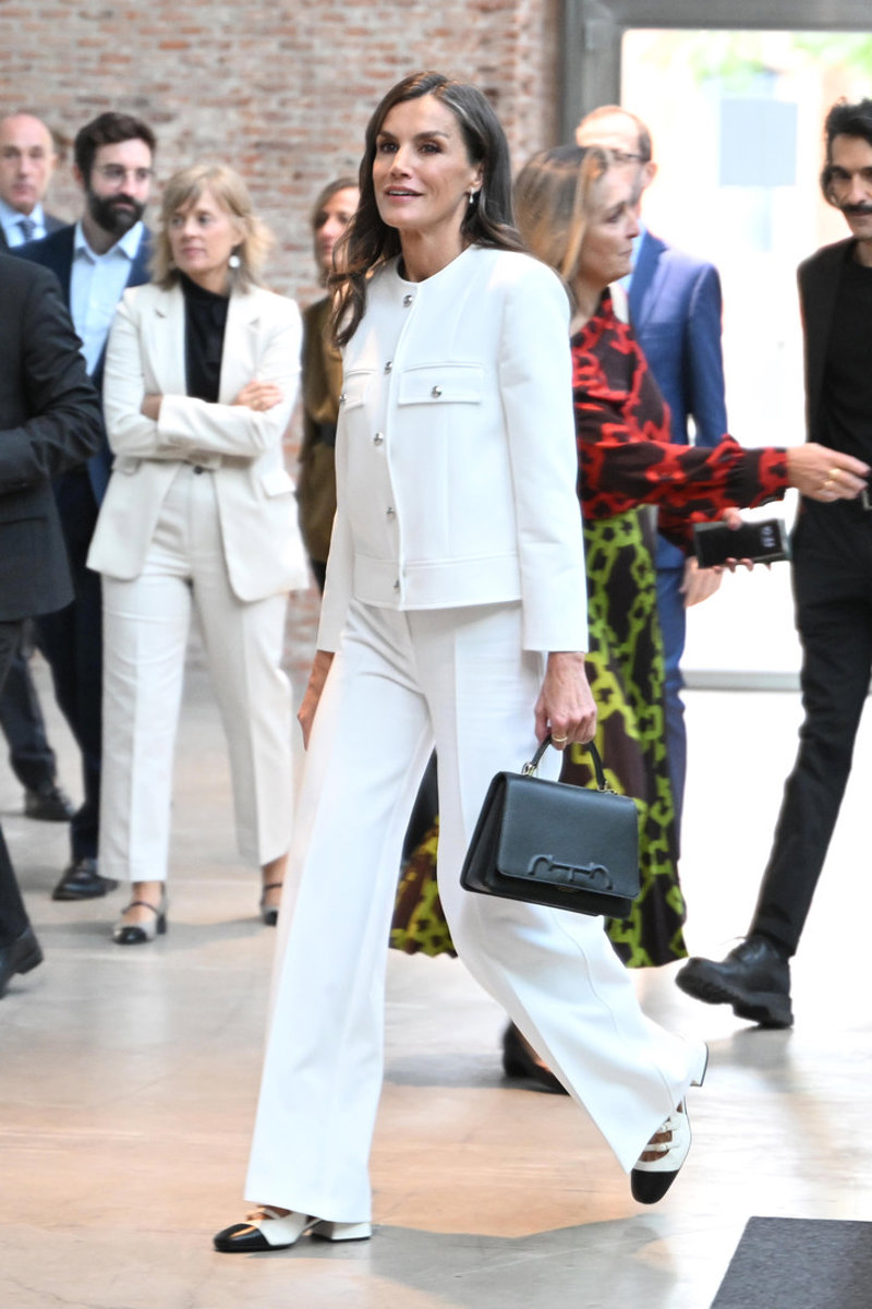 La Reina Letizia recurre al binominio 'black & white' con un look de estreno repleto de flechazos