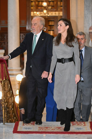 La Reina Letizia reinventa su vestido 'efecto vientre plano' favorito y lo eleva con maxi cinturón y botas altas