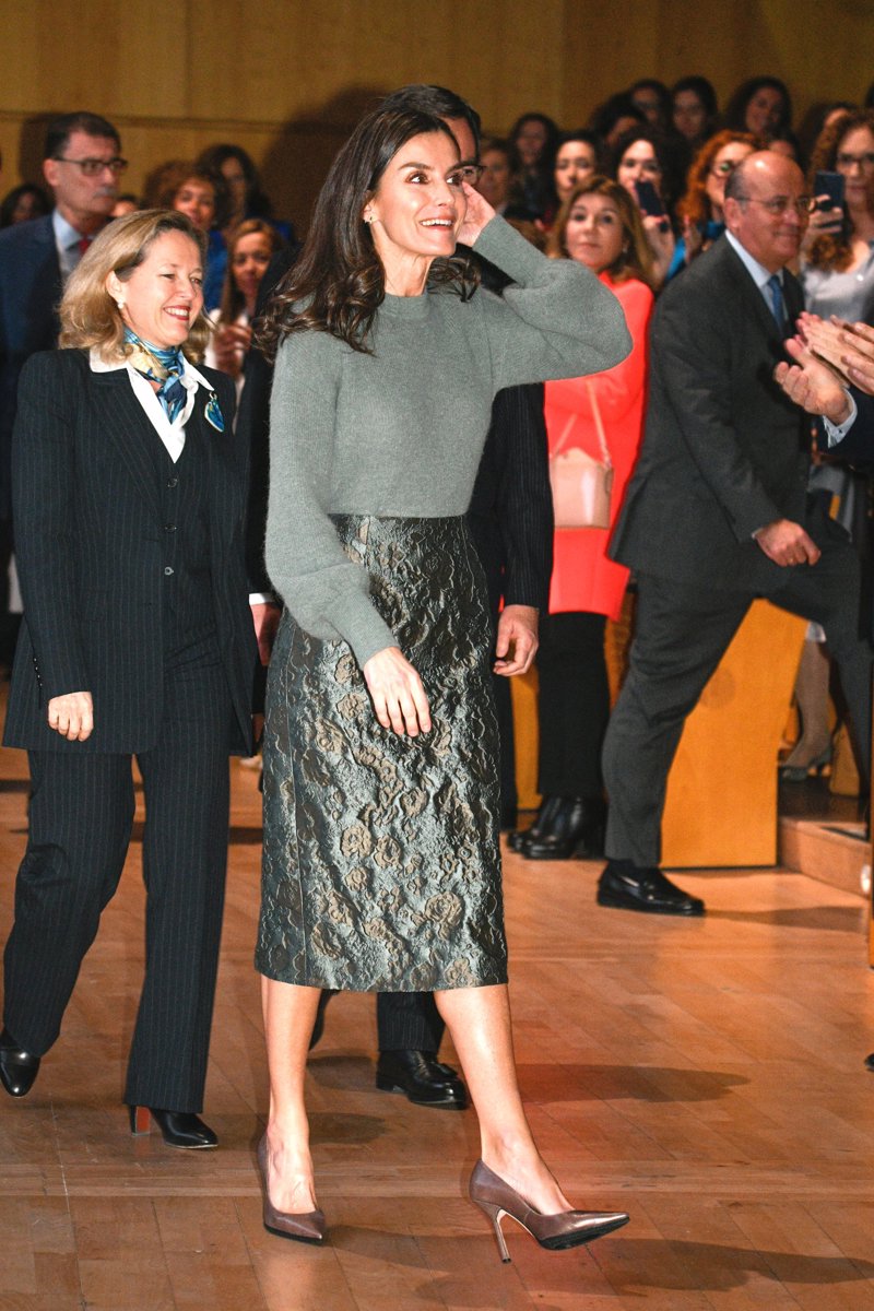 La Reina Letizia rescata de su fondo de armario un estilismo discreto, pero elegante