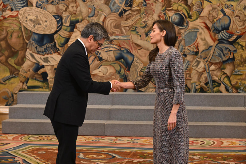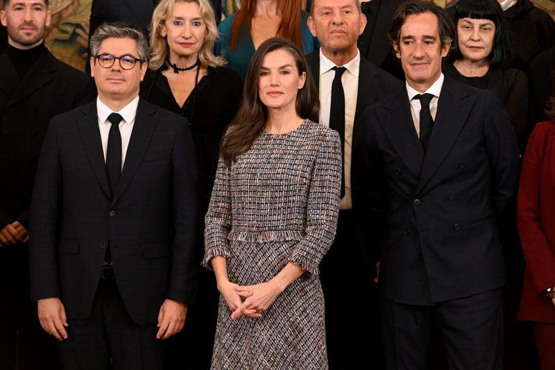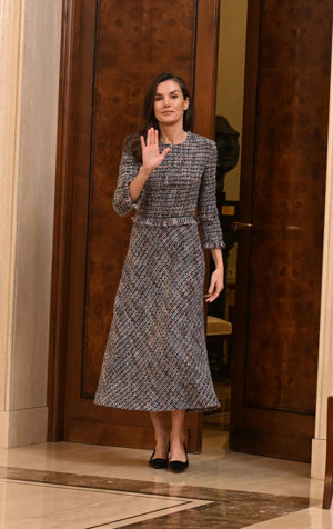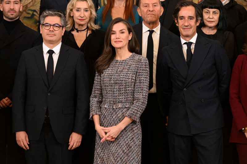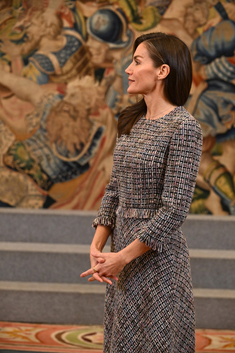 La Reina Letizia rescata su misterioso vestido de tweed en su cita con la moda española, ¡y arrasa!