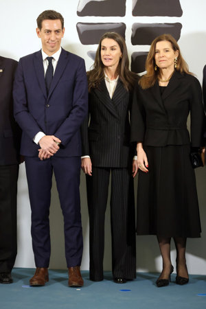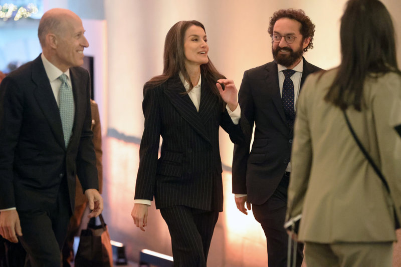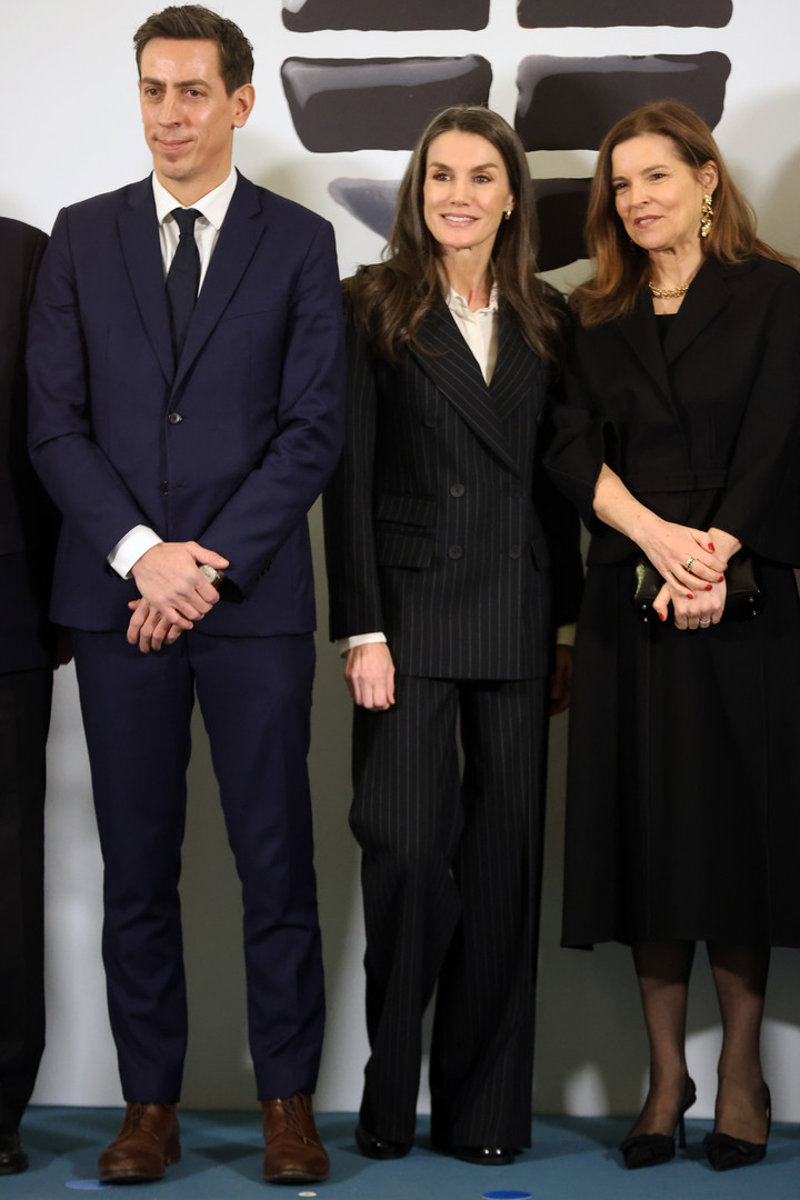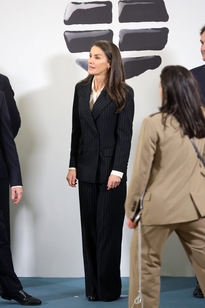 La Reina Letizia rescata el traje de raya diplomática que causó furor en 2025 en su primer acto en solitario del año