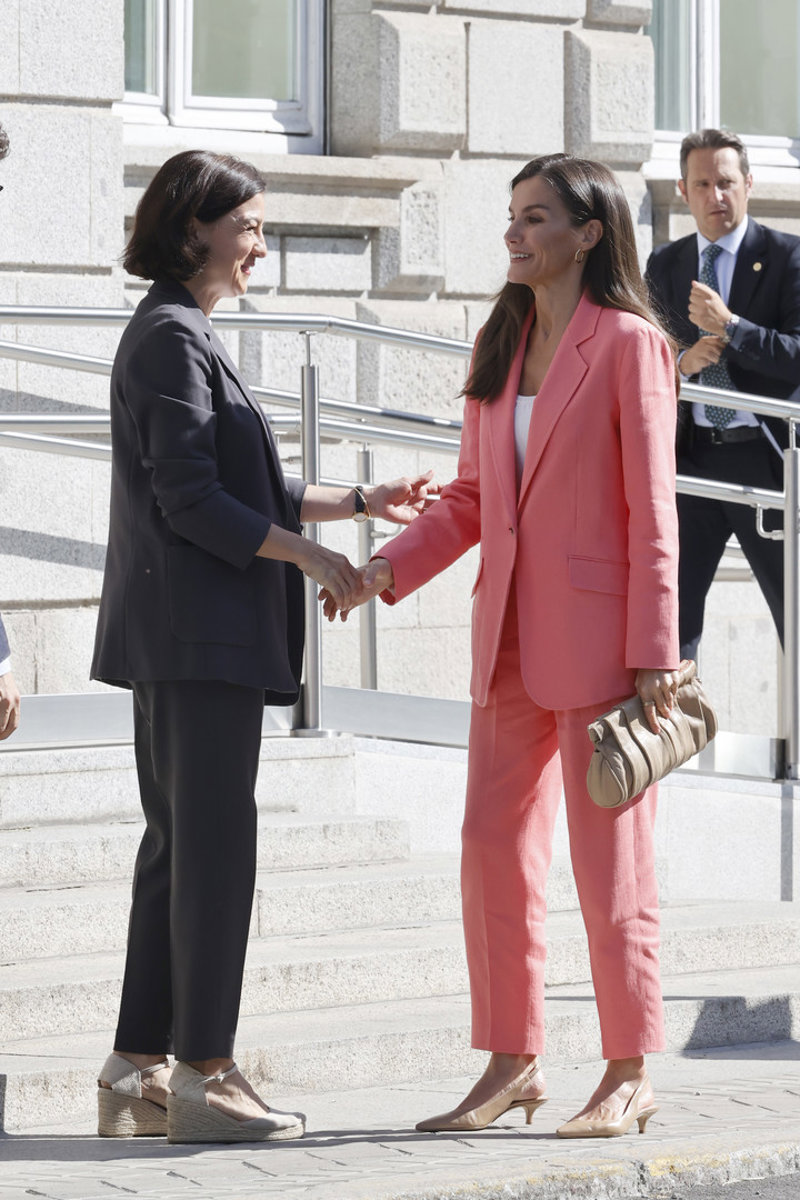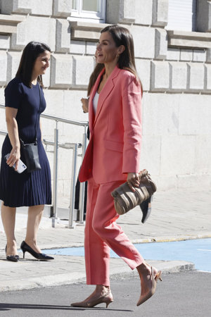 La Reina Letizia rescata su traje vitamina en color coral, ¡y arrasa!