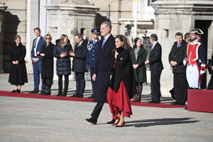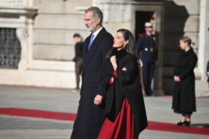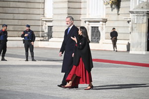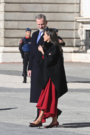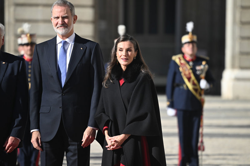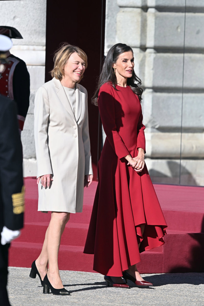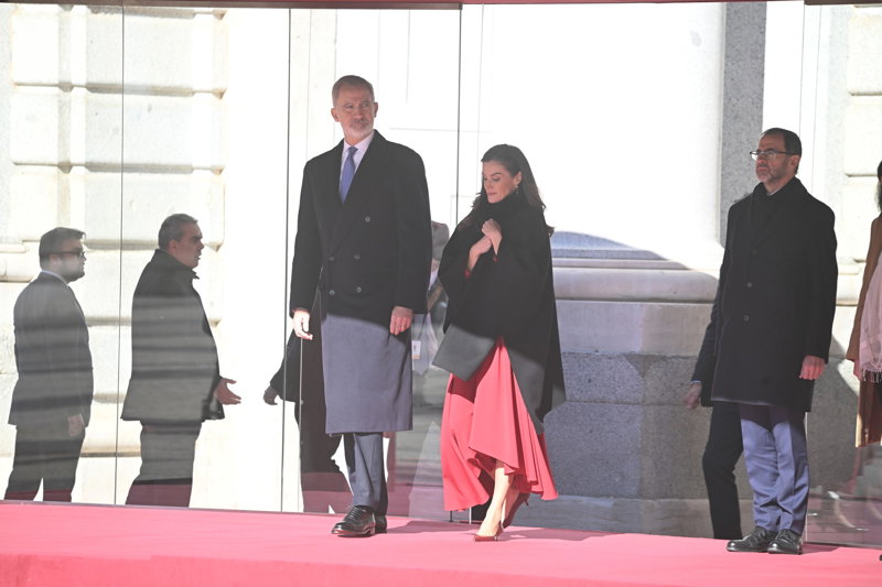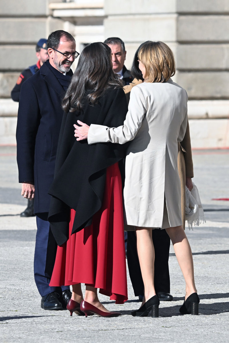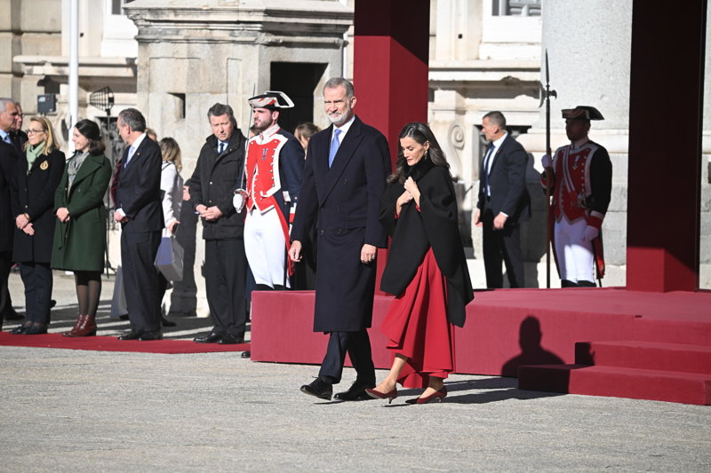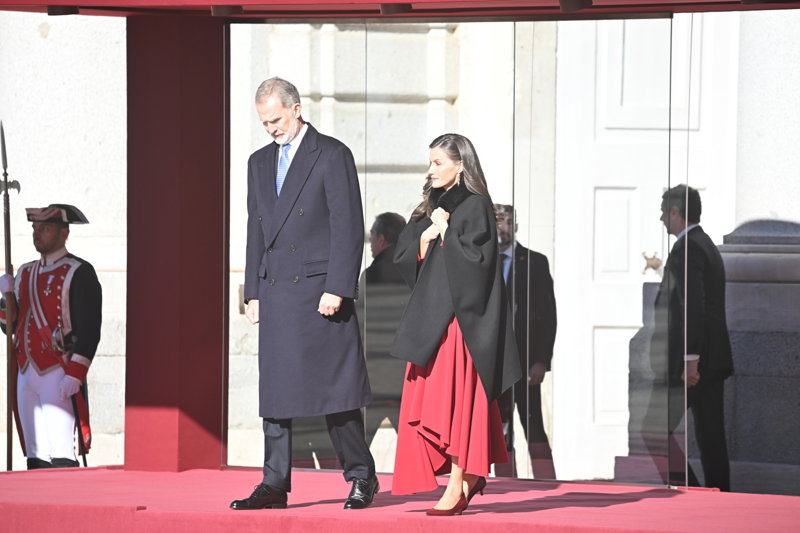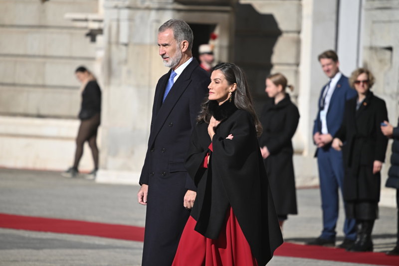 La Reina Letizia, sublime, enamora con un look invernal con capa y vestido rojo asimétrico