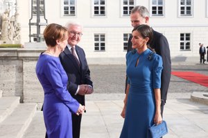 La Reina Letizia se supera a sí misma y enamora en Alemania con un sofisticado vestido azul klein