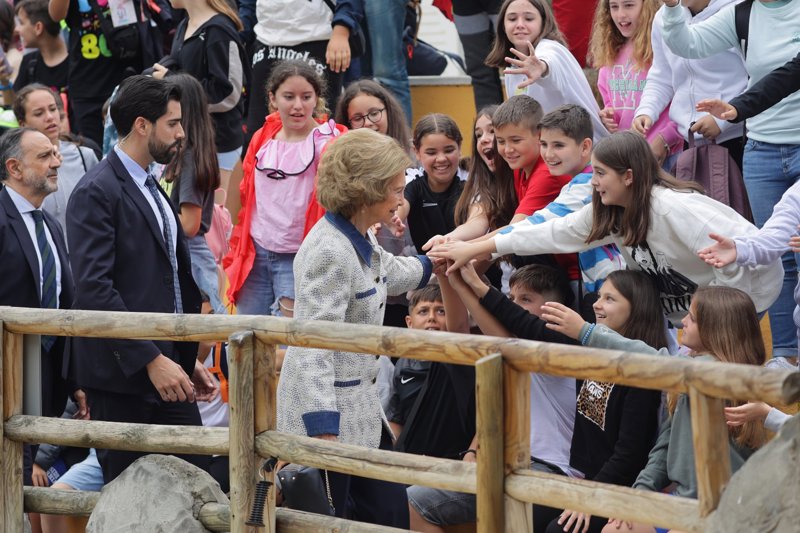 La Reina Sofía, derroche de ternura con unos niños y un león marino en su visita al Zoo de Madrid