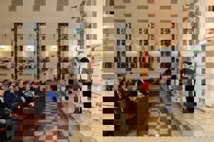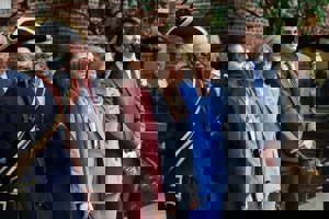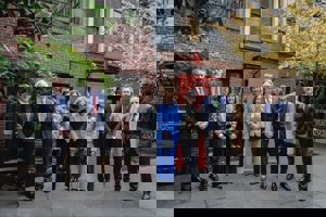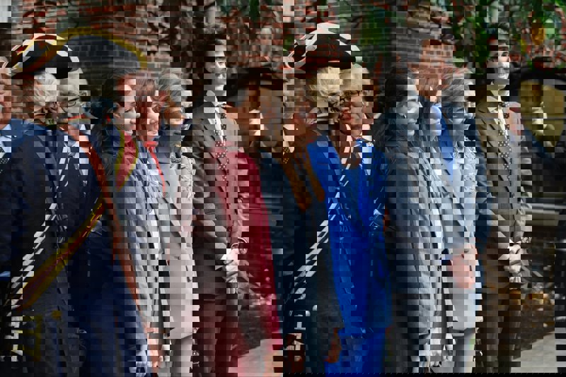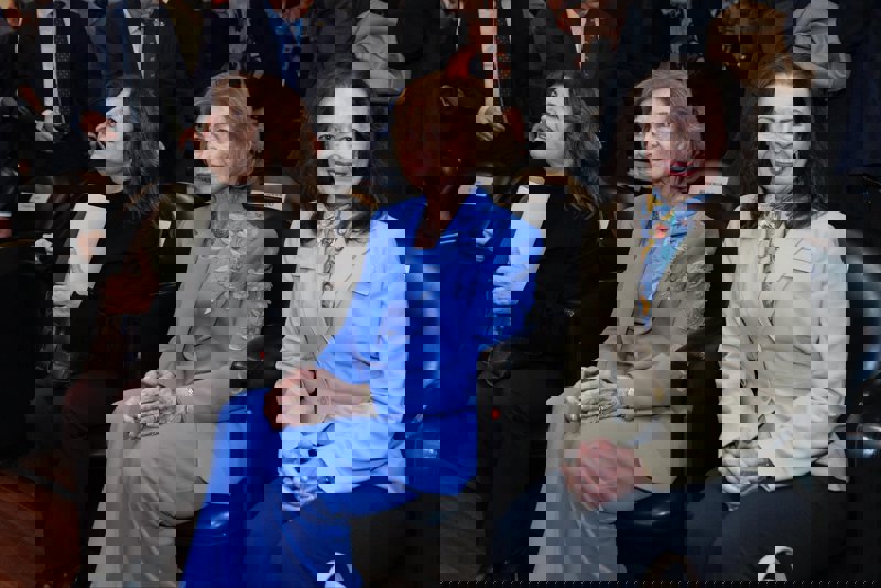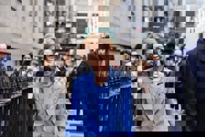 La Reina Sofía rescata su traje azul con bordados florales y da una lección de elegancia en Nueva York